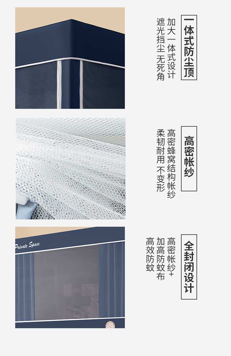 当前位置: 91家纺网 > 商品网购 > 床上用品 > 蚊帐 > 学生蚊帐 > 壹和 2026新款纯物理无涂层无覆膜款遮光防蚊学生坐床蚊帐 靛蓝