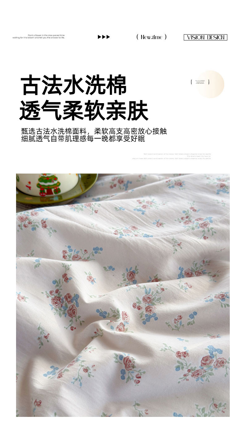 (总)云玲时尚 2026新款古法水洗棉夏被床盖四件套,半亩花棠,初禾,蝶梦,粉蓝玫瑰,粉色Kitty,好多小象,可爱熊,素澜,童话镇,童梦国,星星人,樱桃绿