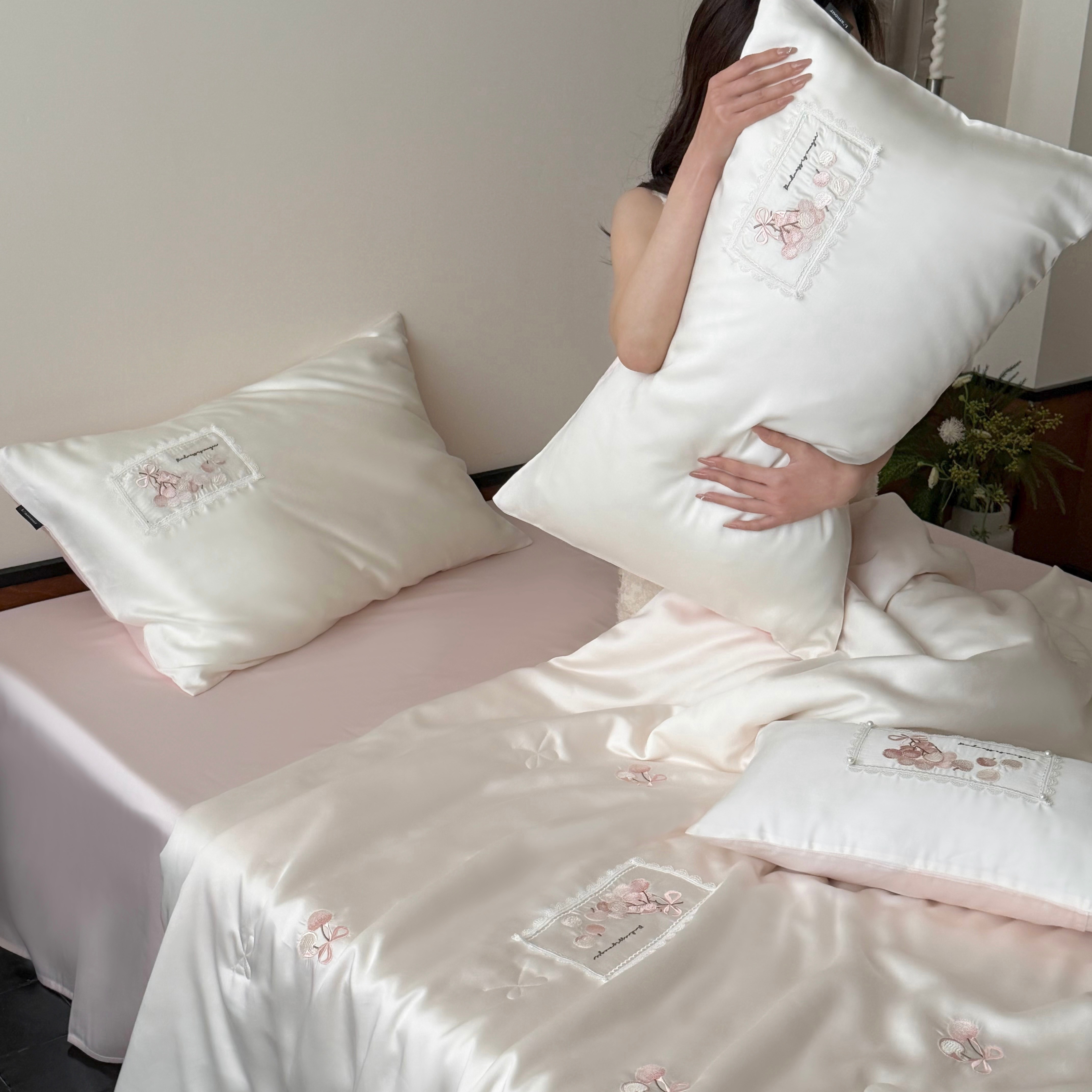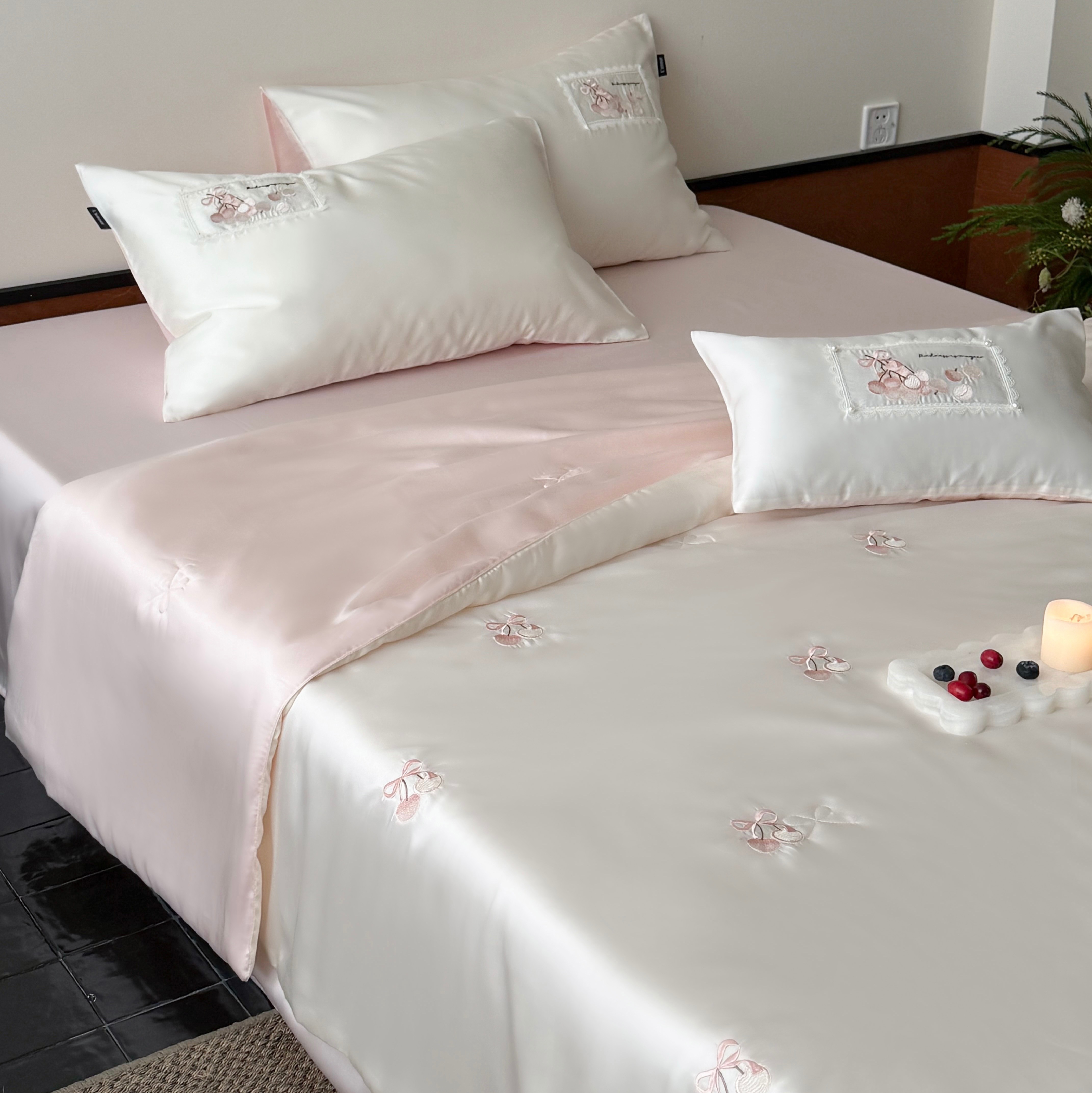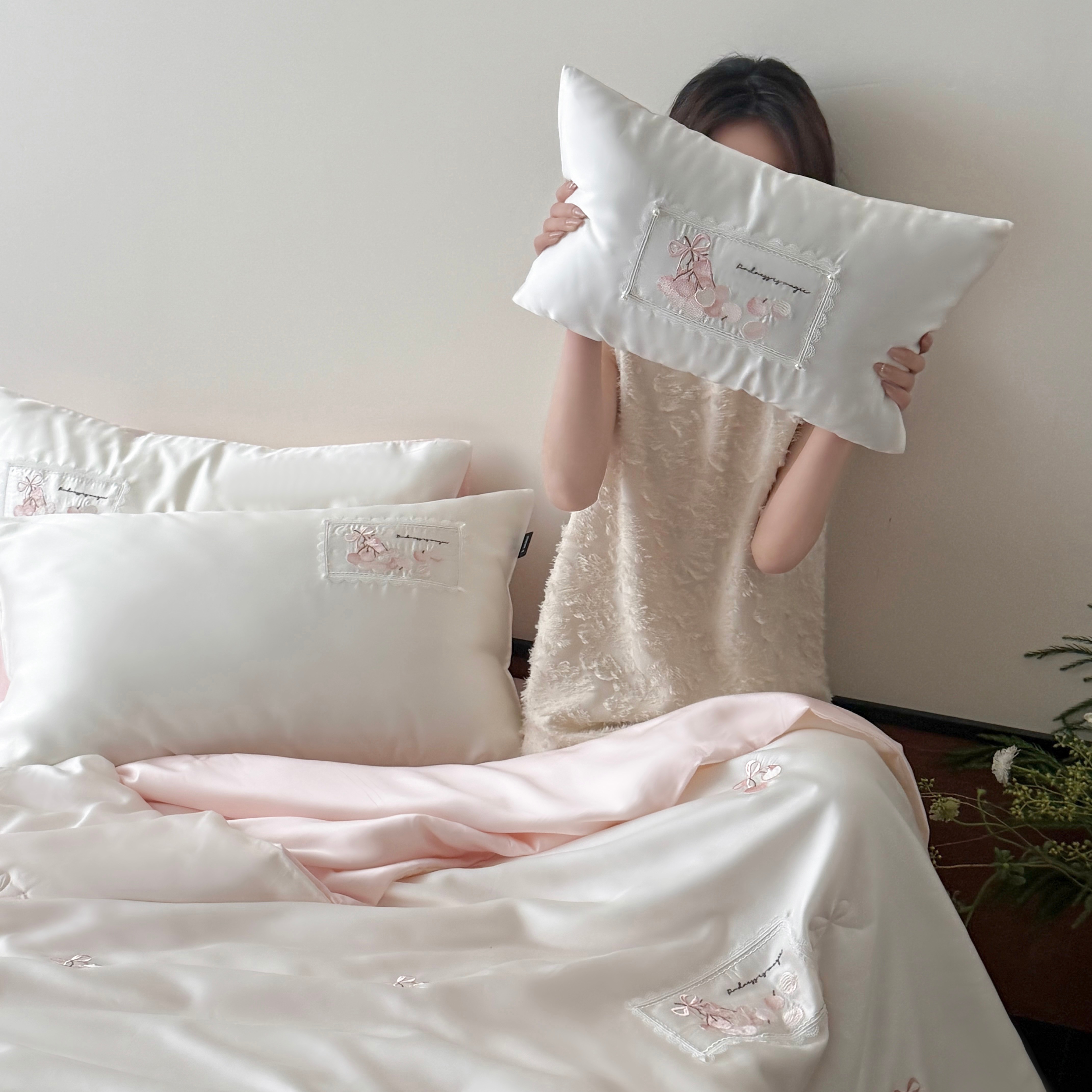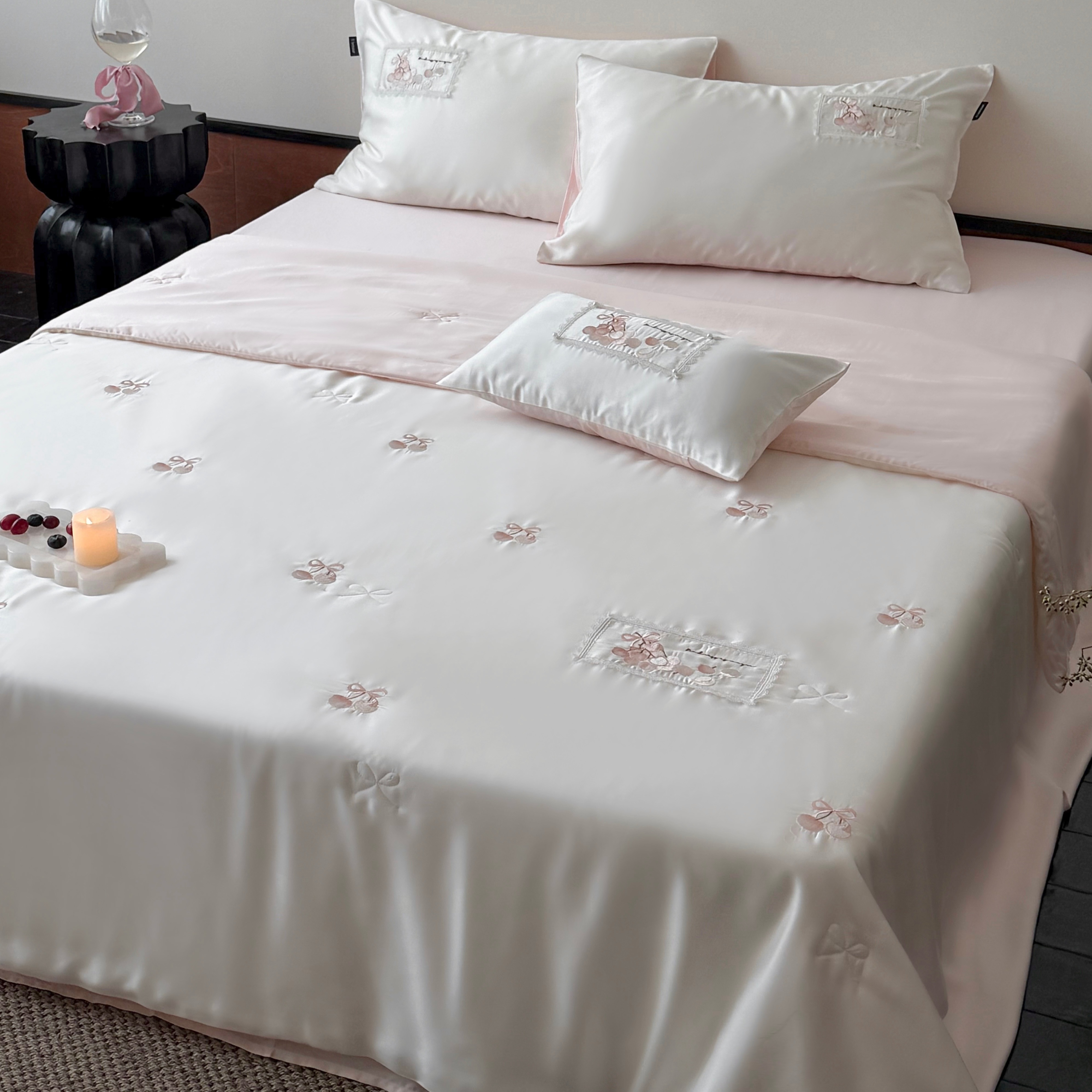 • 91家纺网 家纺一手货源 找家纺 鹿班家居 2026新款60S兰精天丝刺绣夏被空调被夏凉被四件套粉红荔枝(标准会员-20元) 粉色