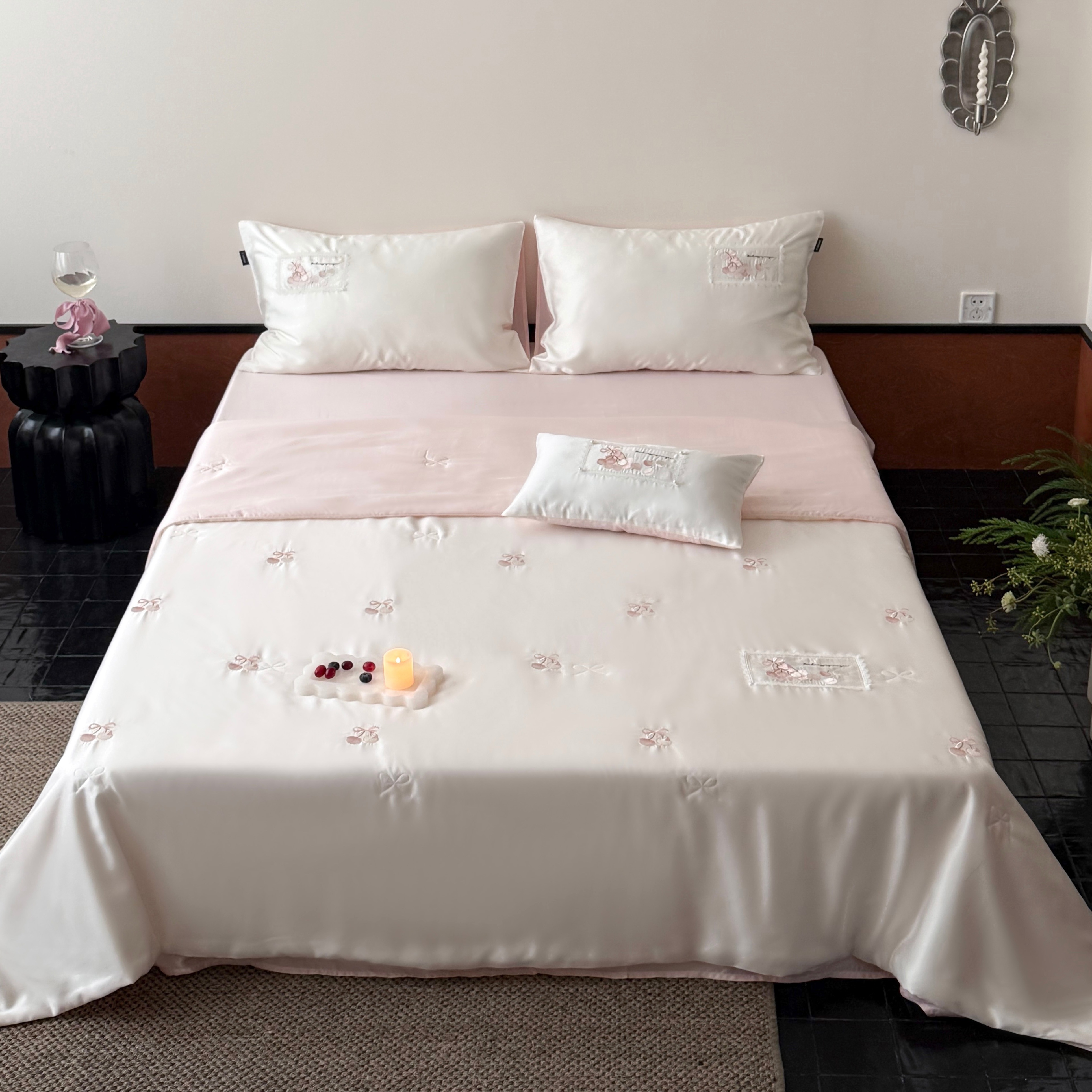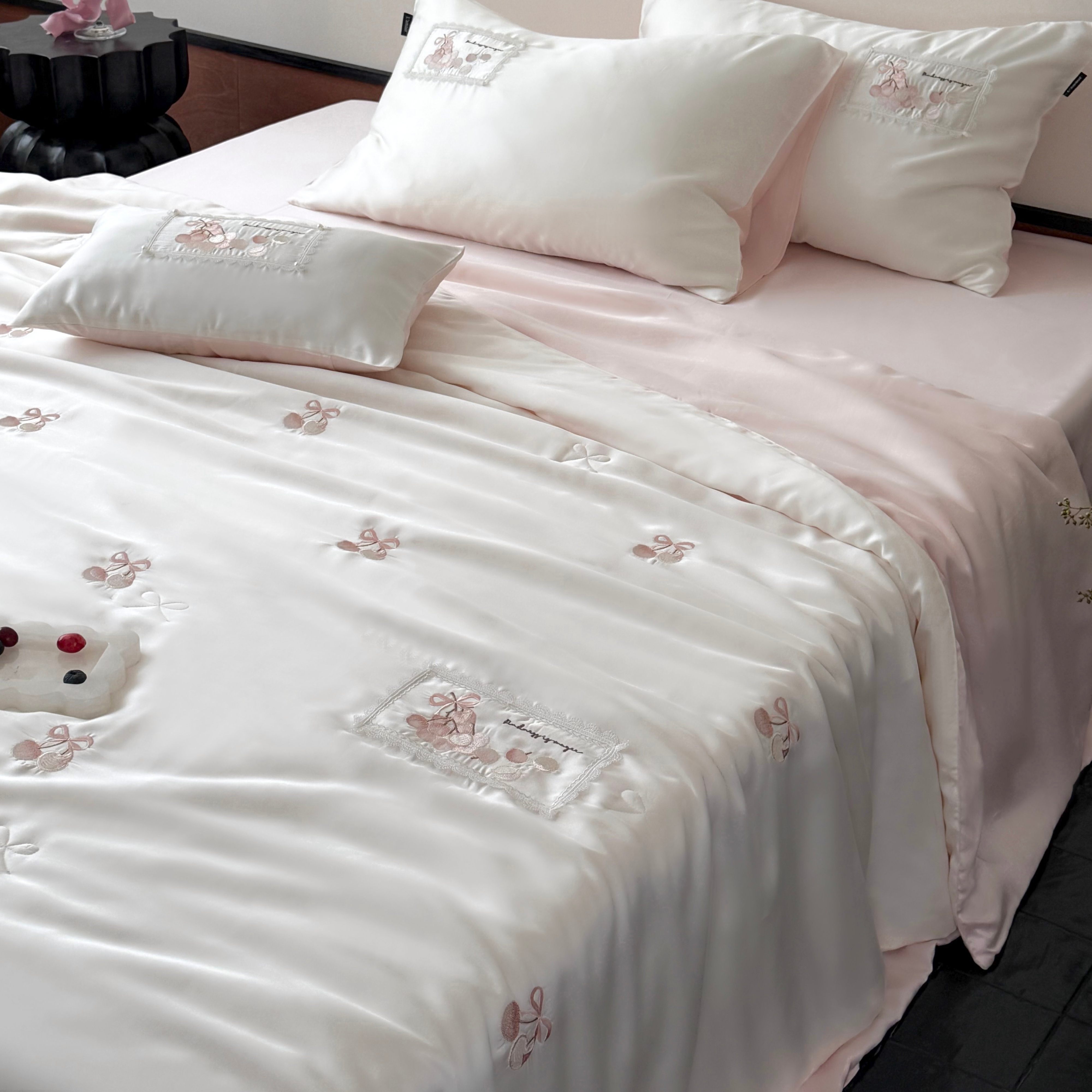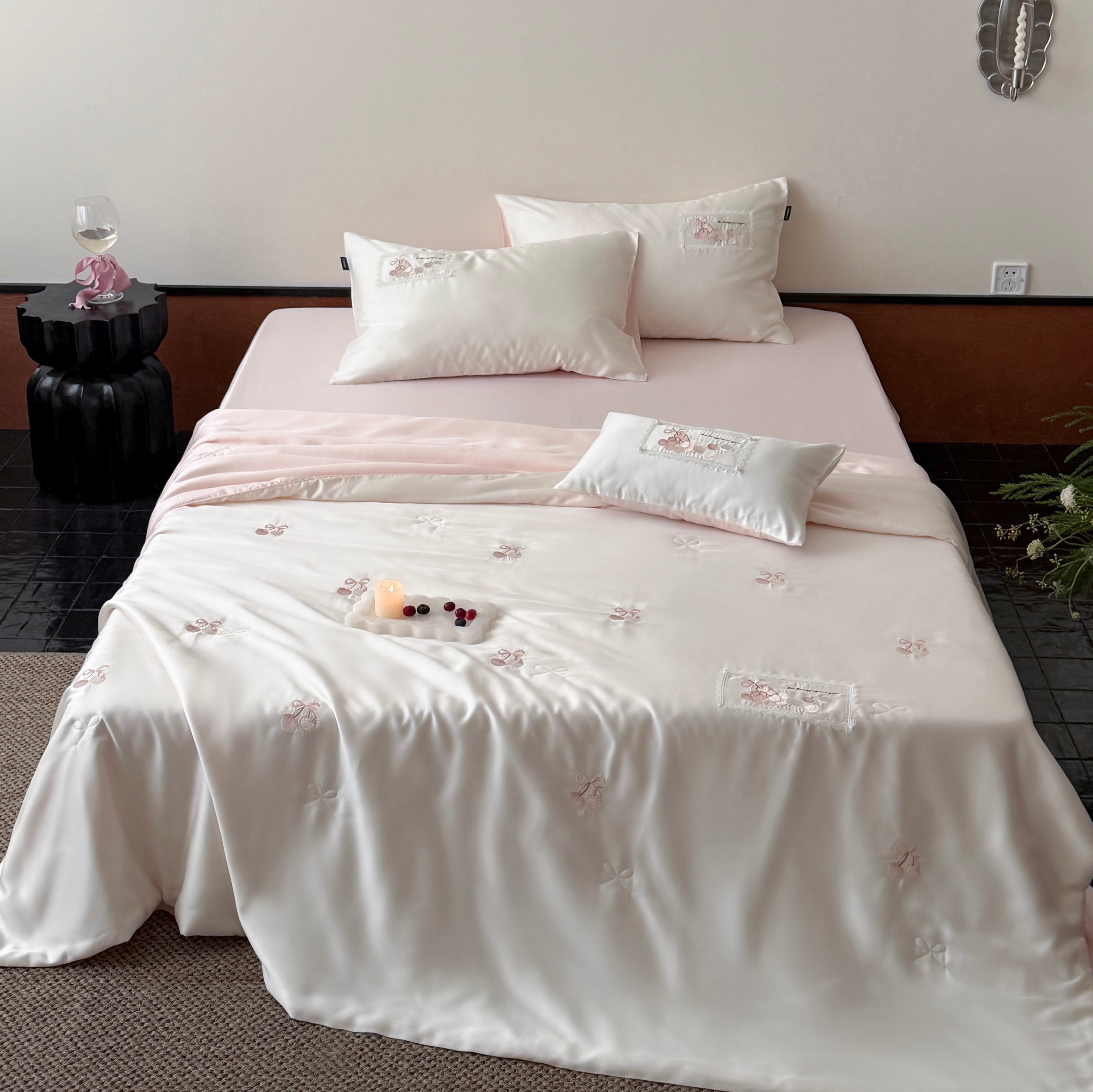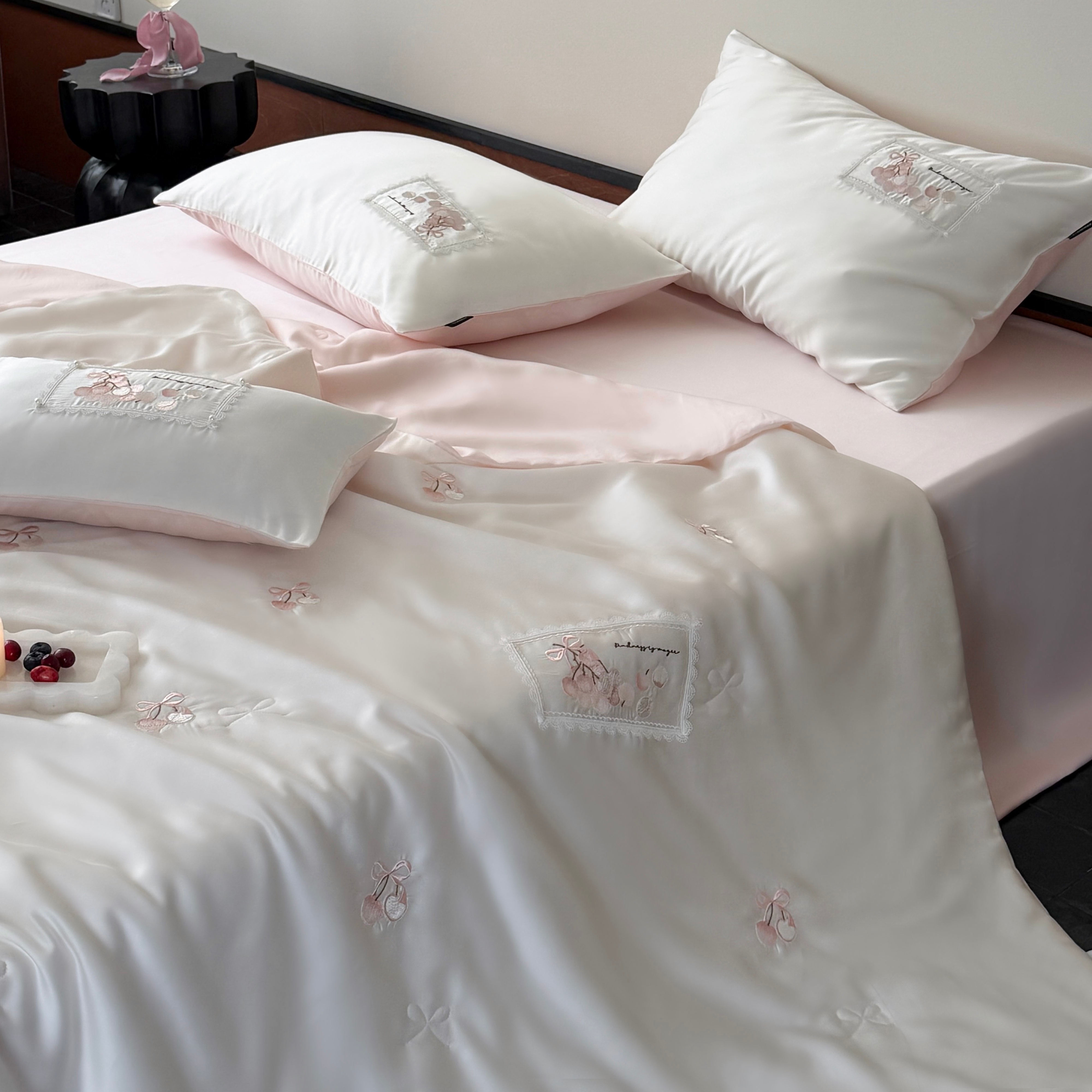 鹿班家居 2026新款60S兰精天丝刺绣夏被空调被夏凉被四件套粉红荔枝(标准会员-20元) 粉色