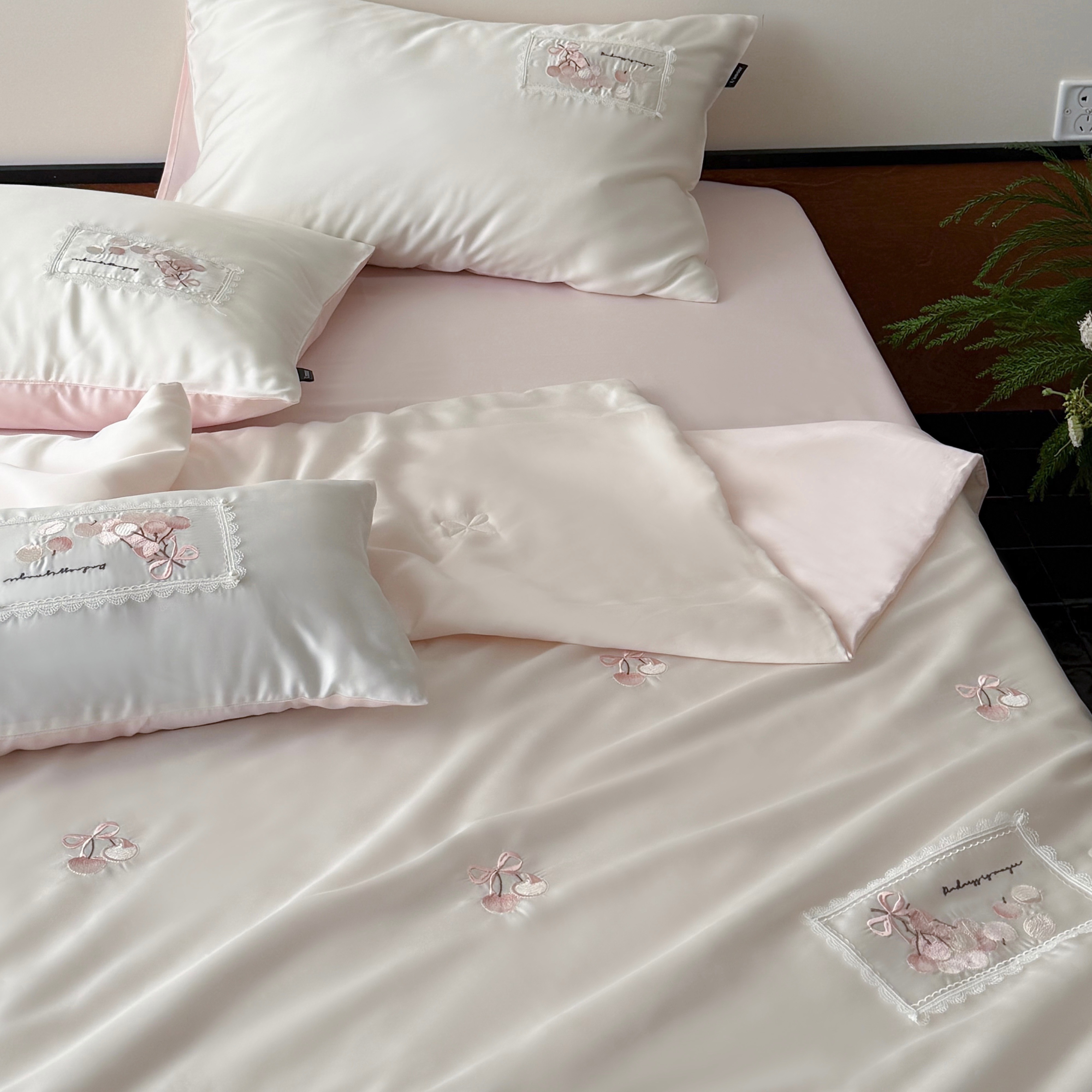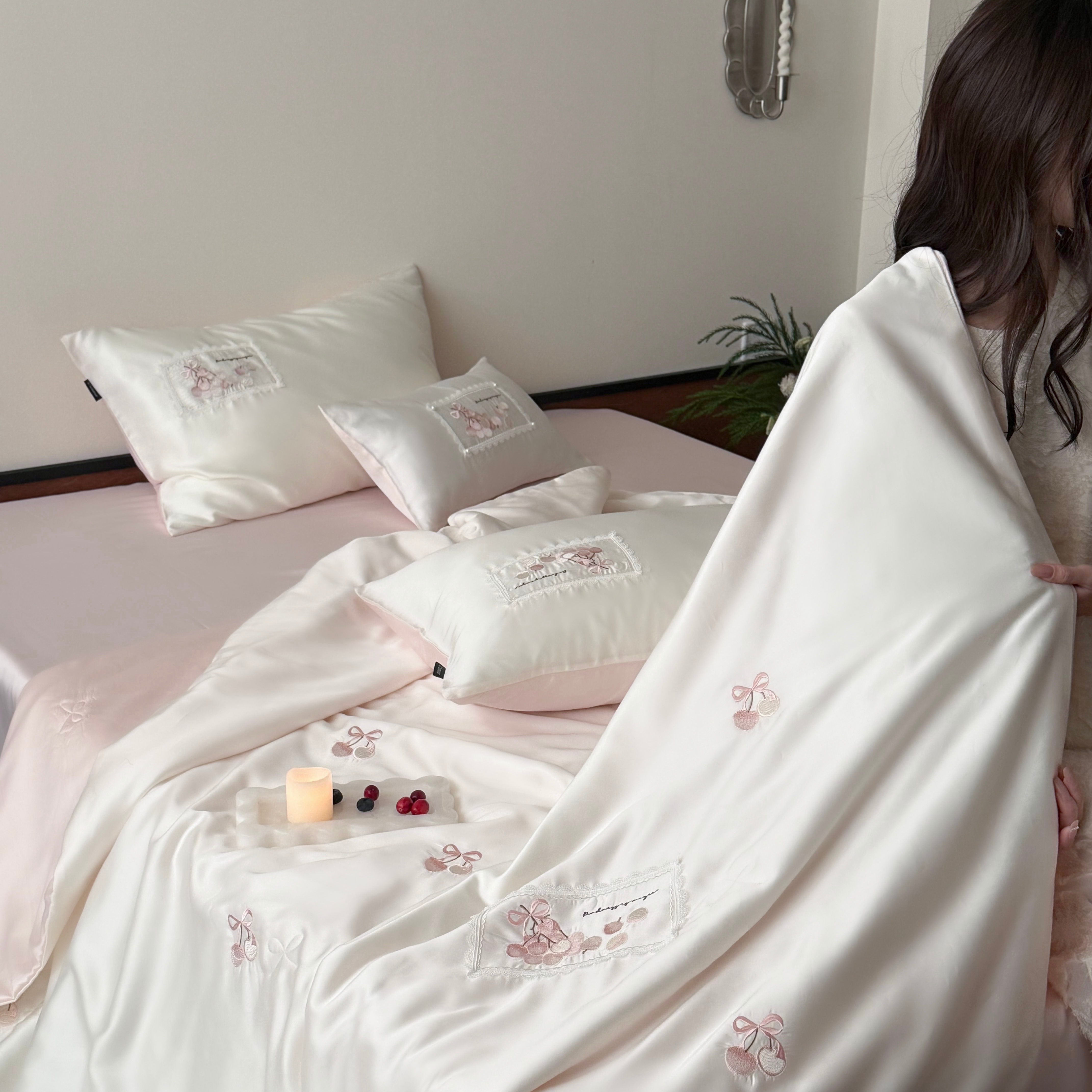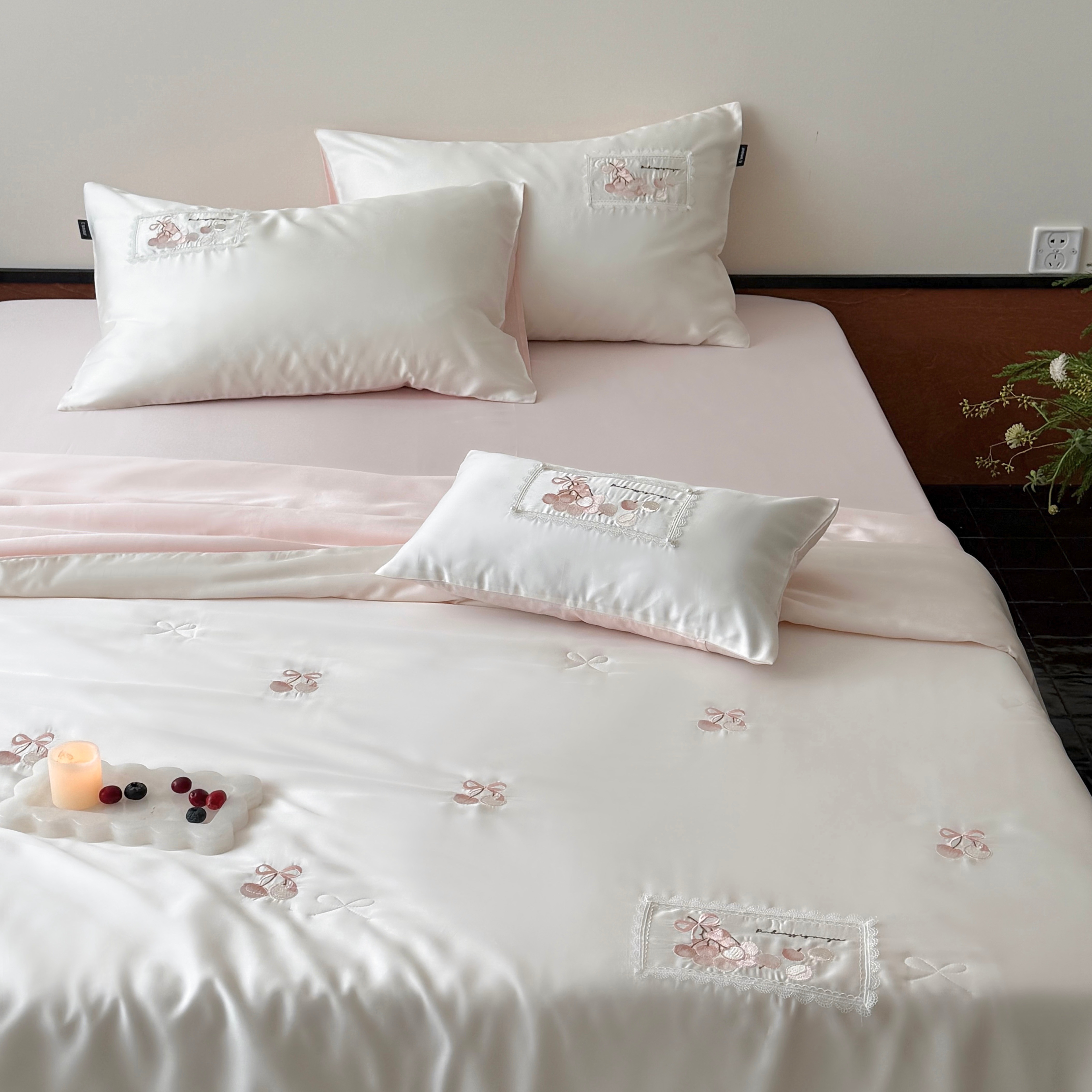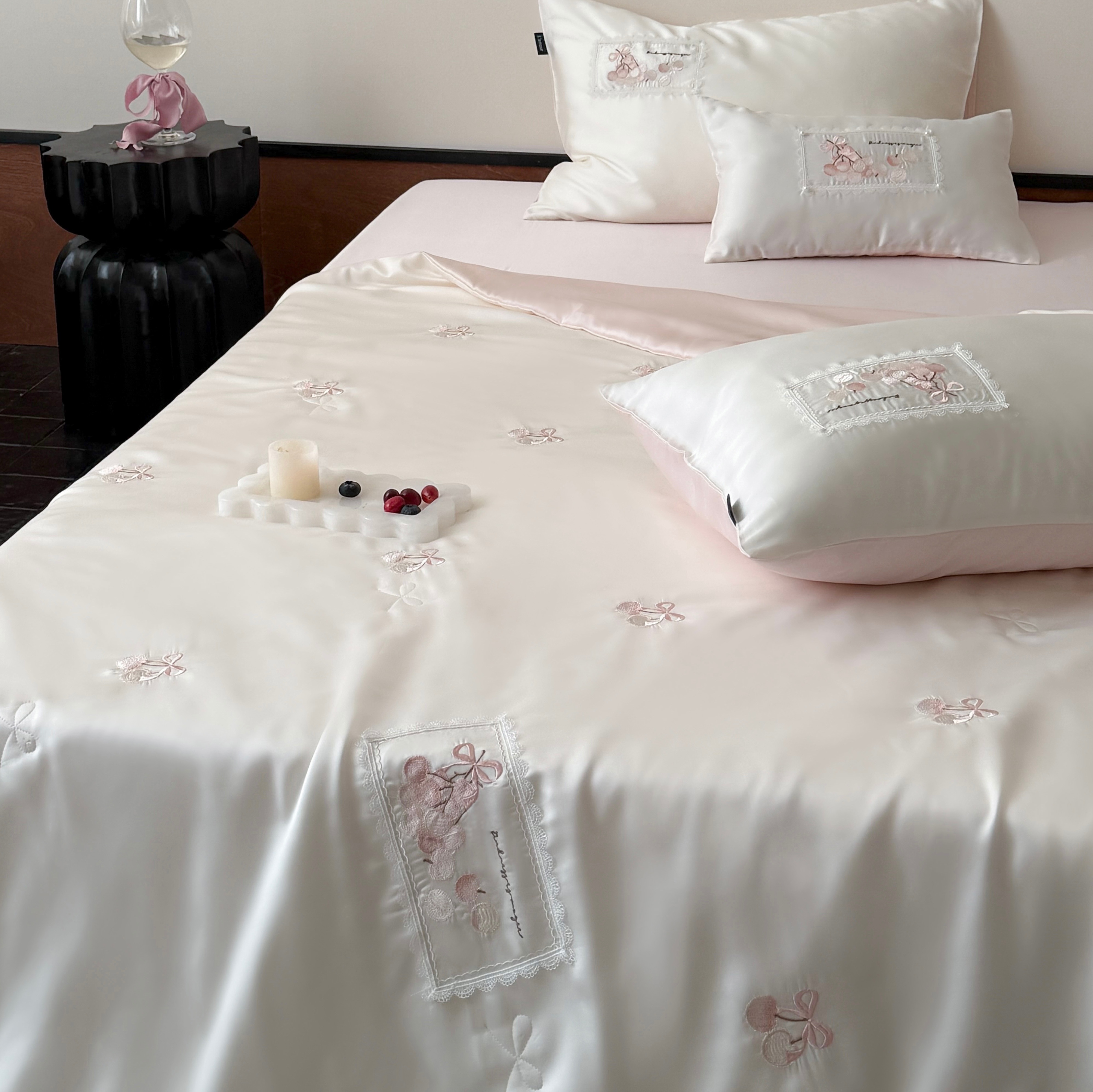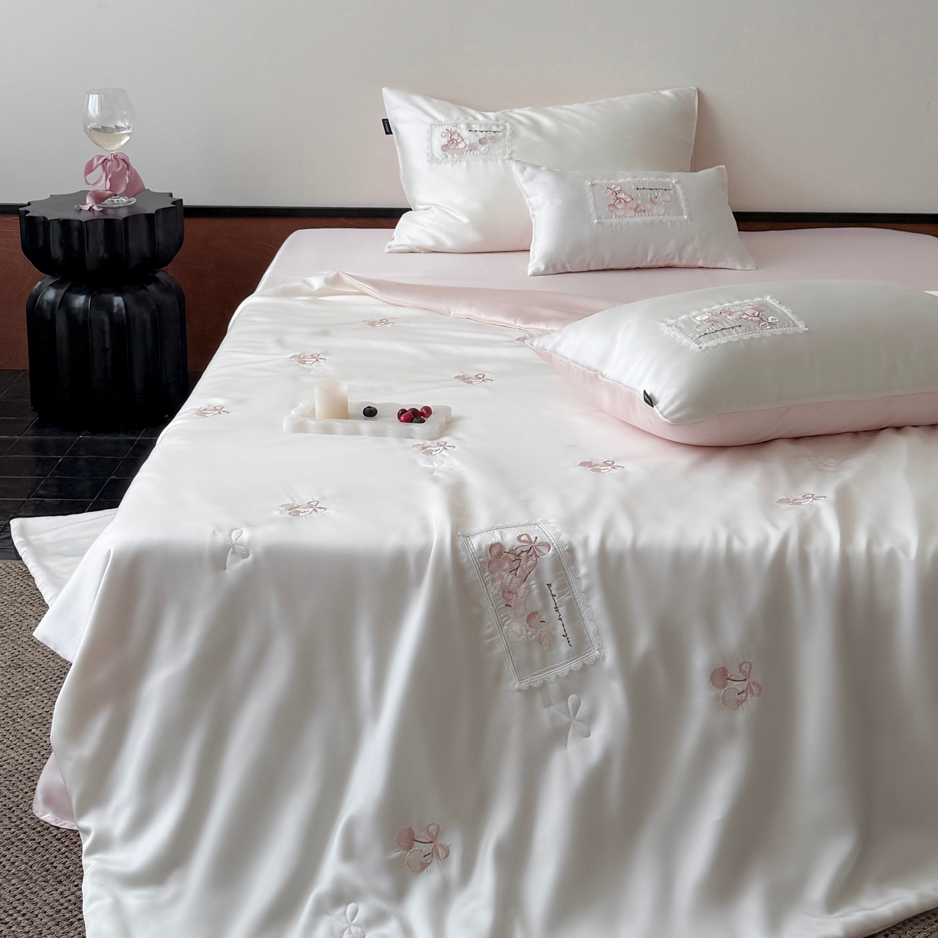 鹿班家居 2026新款60S兰精天丝刺绣夏被空调被夏凉被四件套粉红荔枝(标准会员-20元) 粉色