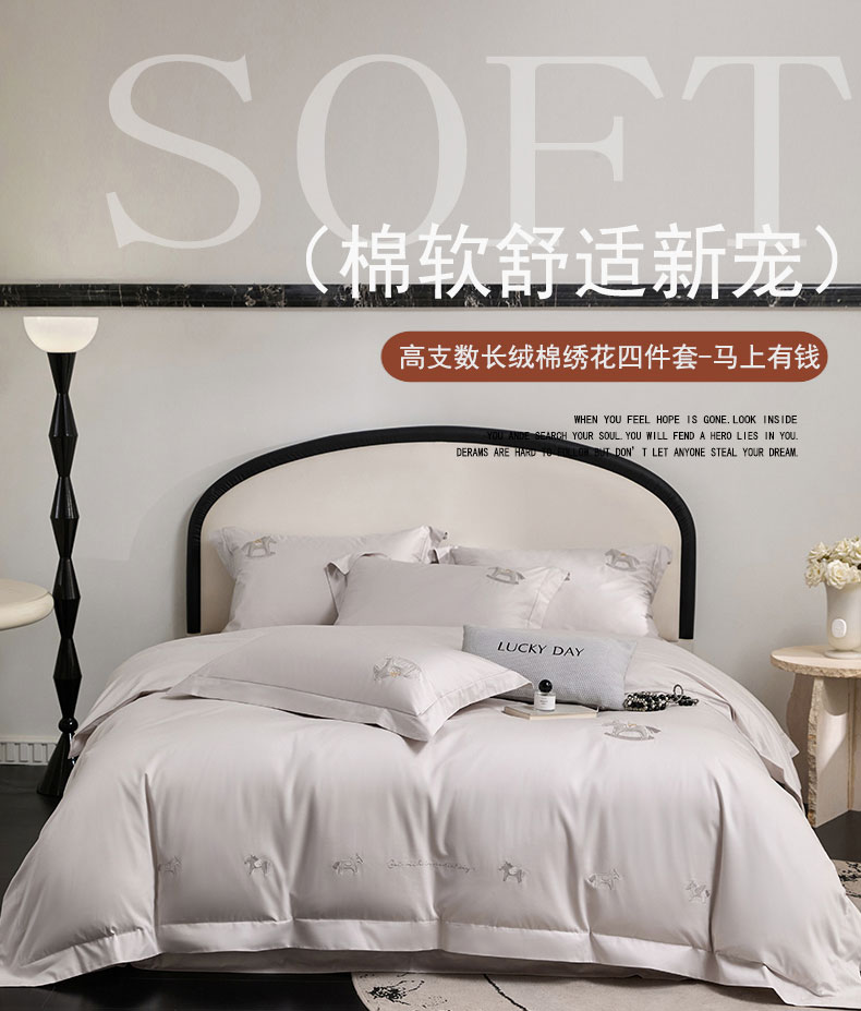 商品名称:蒂爵 2026新款贡缎100支长绒棉全棉纯棉刺绣绣花四件套高端四件套-马上有钱 马上有钱-鸣沙灰