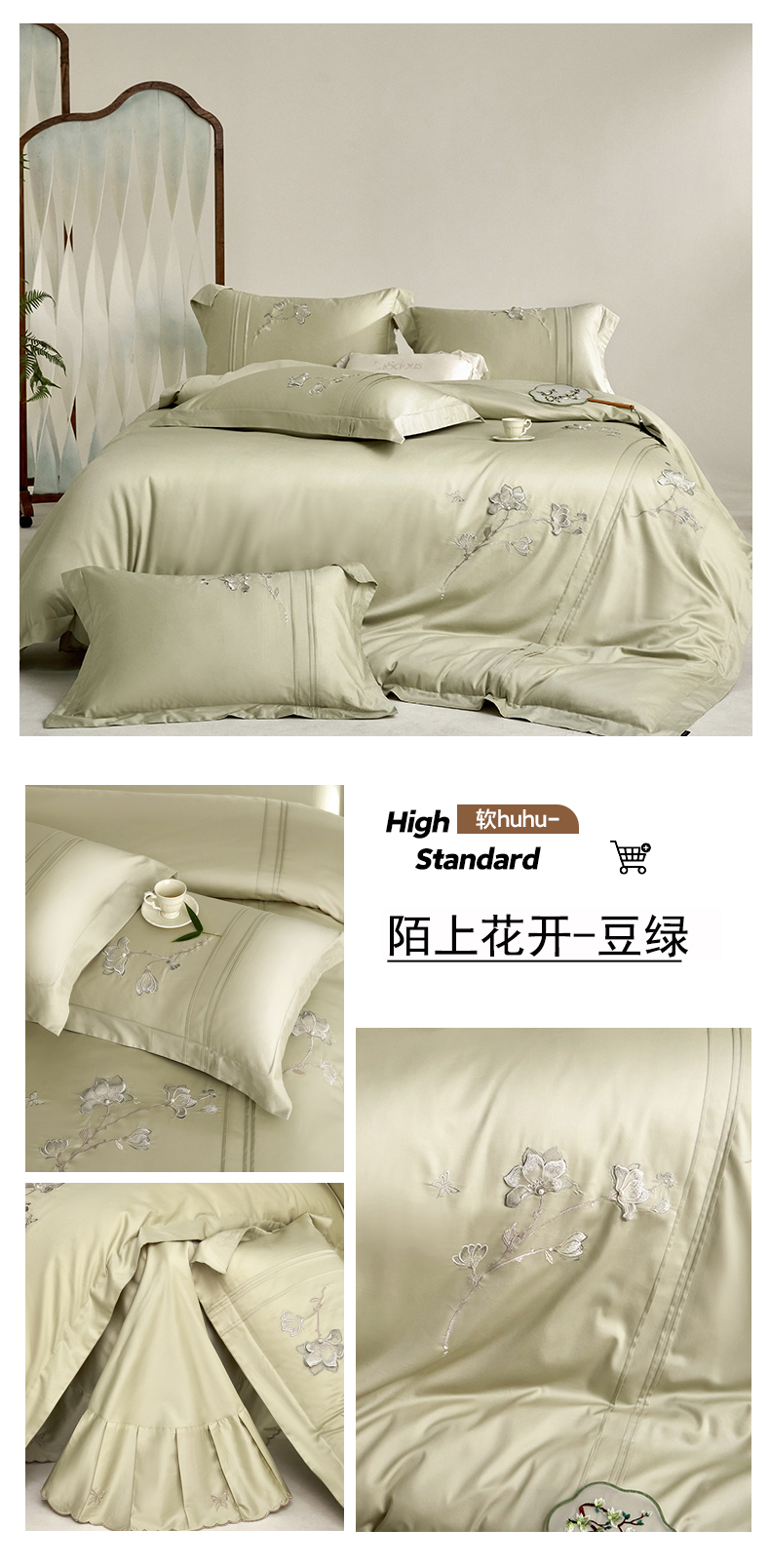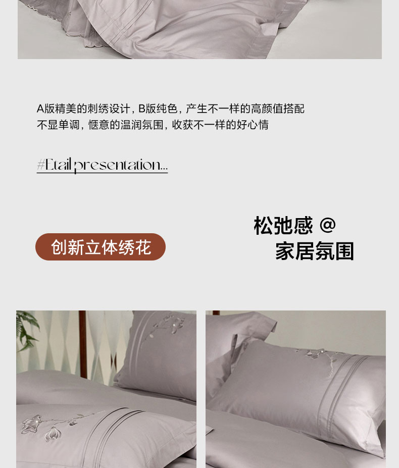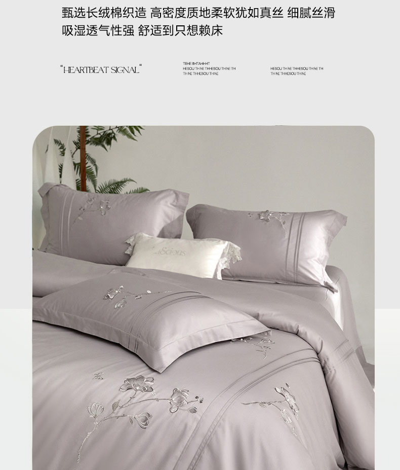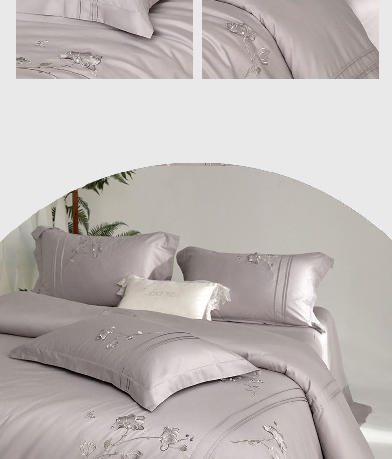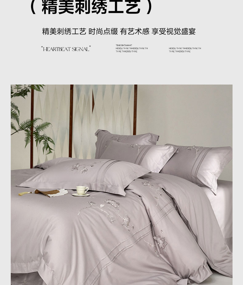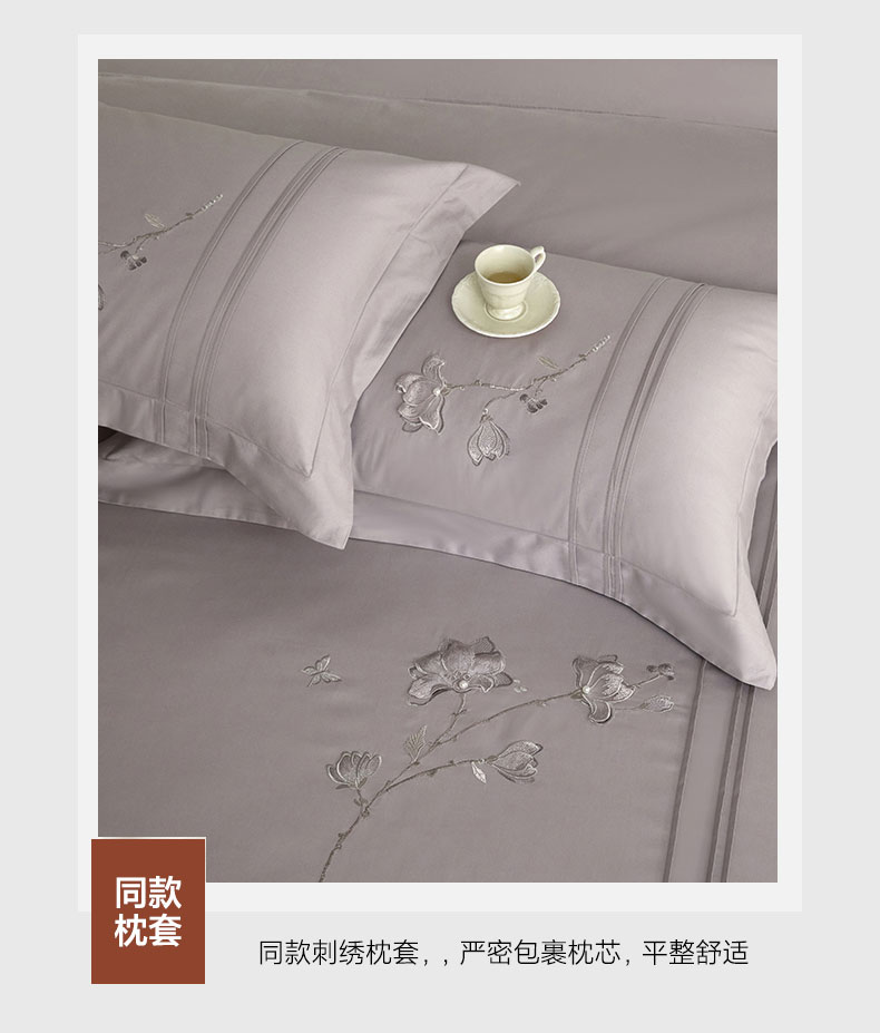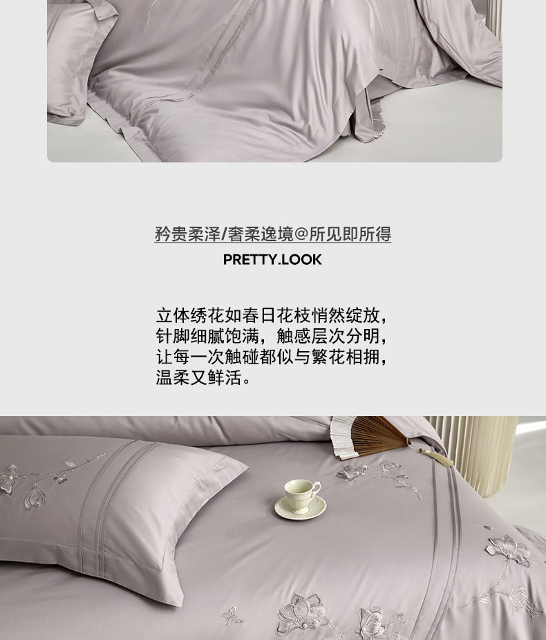 蒂爵 2026新款贡缎100支长绒棉全棉纯棉刺绣绣花四件套高端四件套-陌上花开 陌上花开-晶钻灰