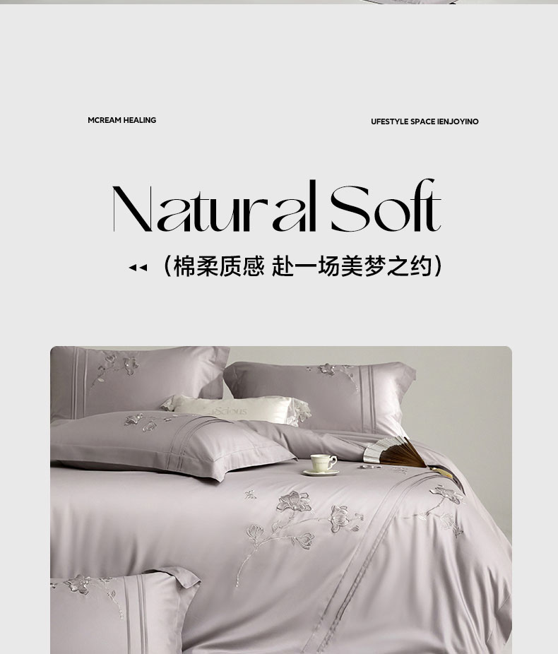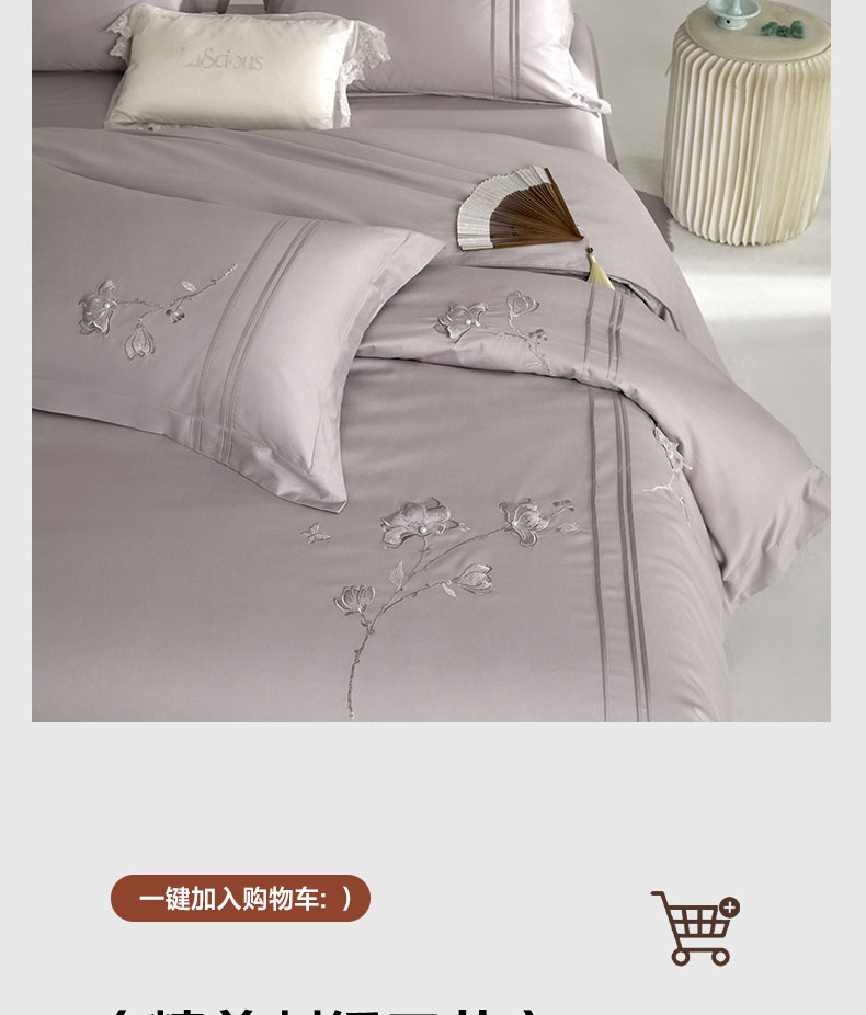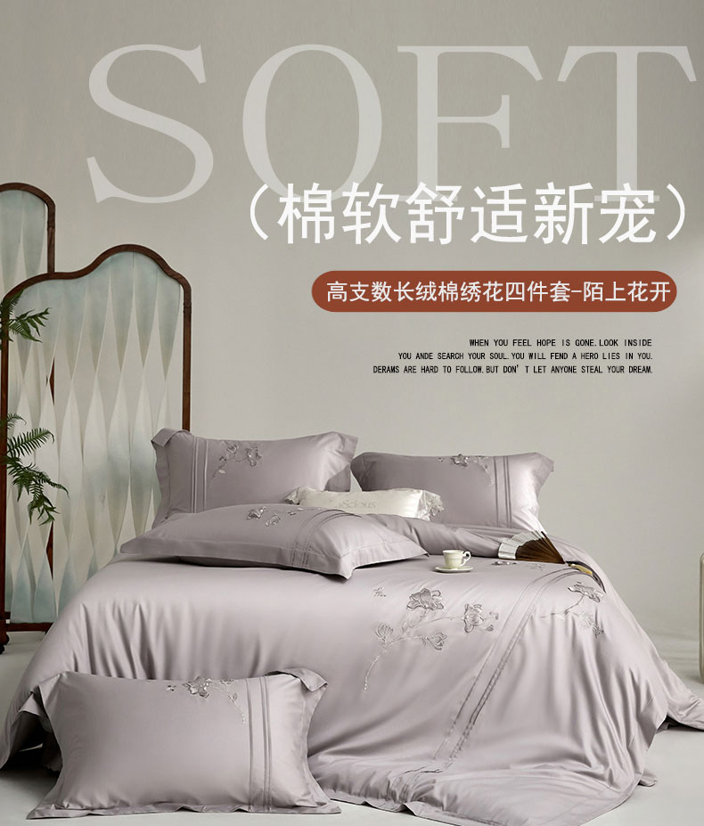 商品名称:蒂爵 2026新款贡缎100支长绒棉全棉纯棉刺绣绣花四件套高端四件套-陌上花开 陌上花开-晶钻灰
