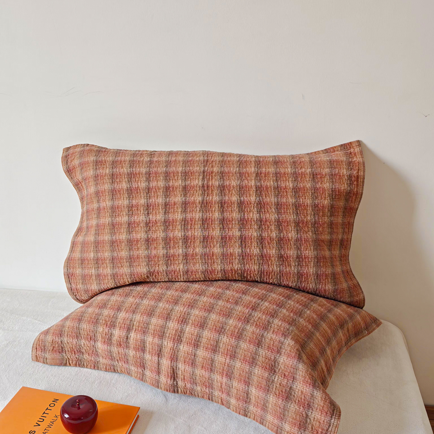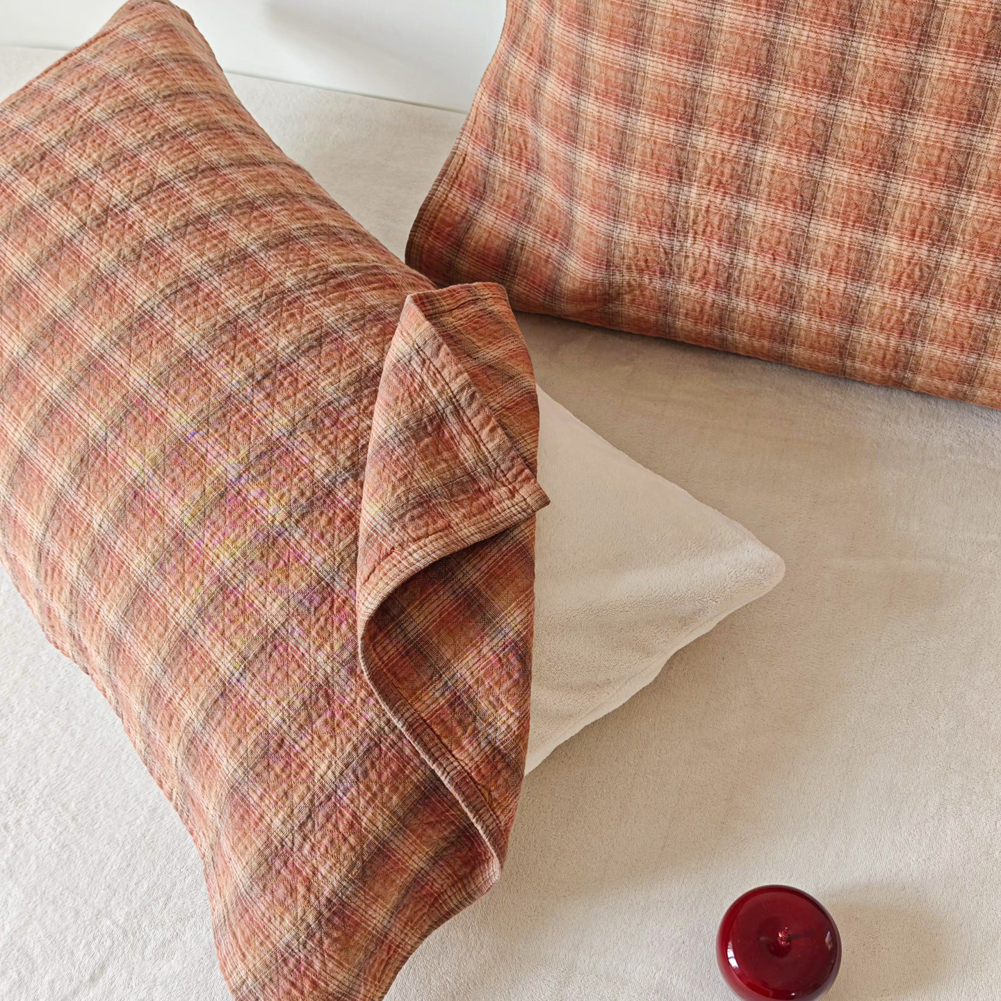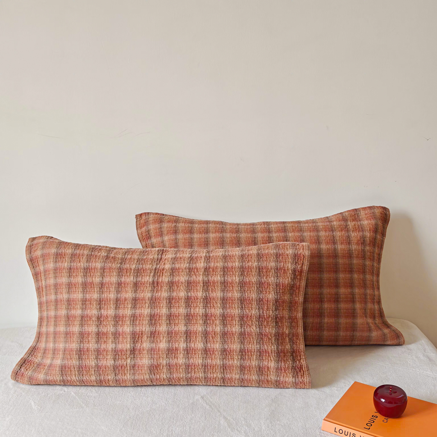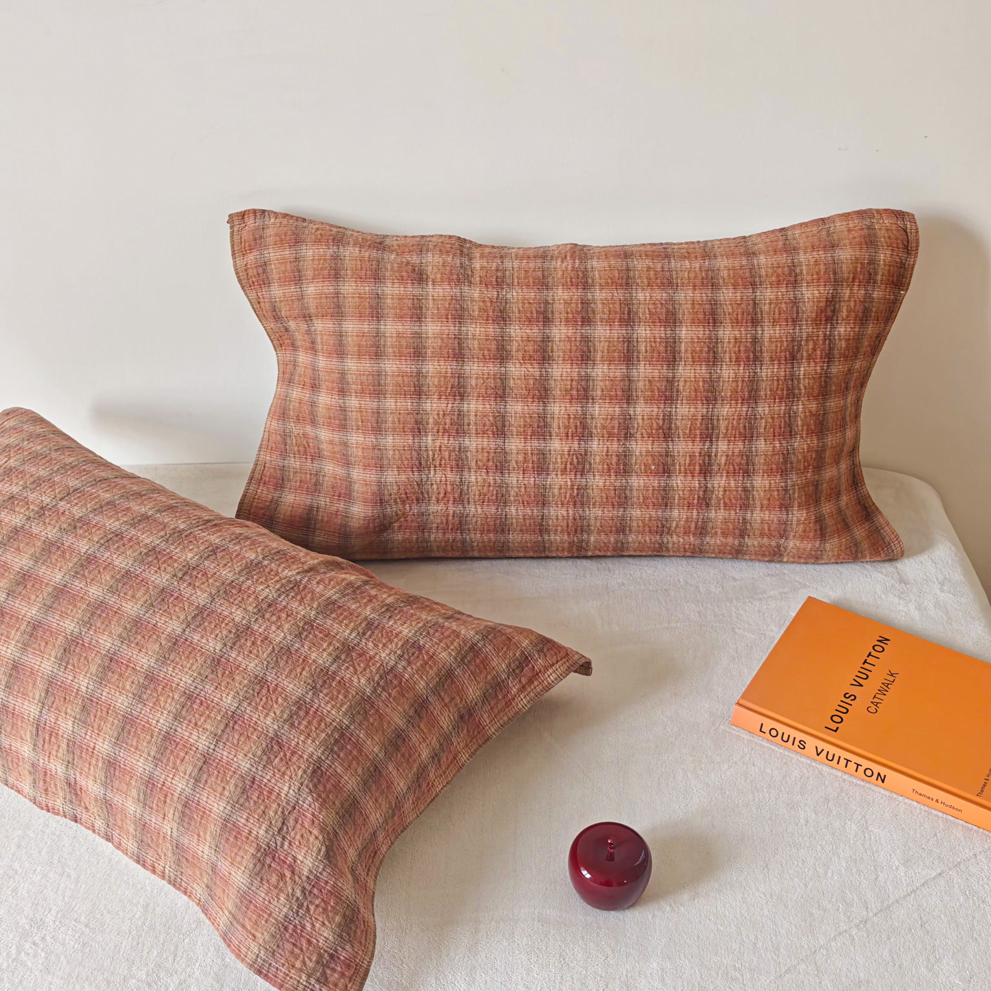 沐瑟家纺 2026新款格子款枕巾垫巾 芸柚-粉色