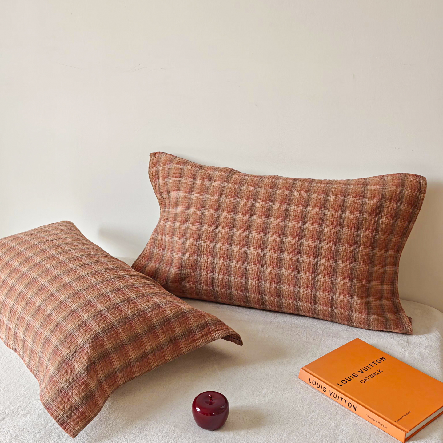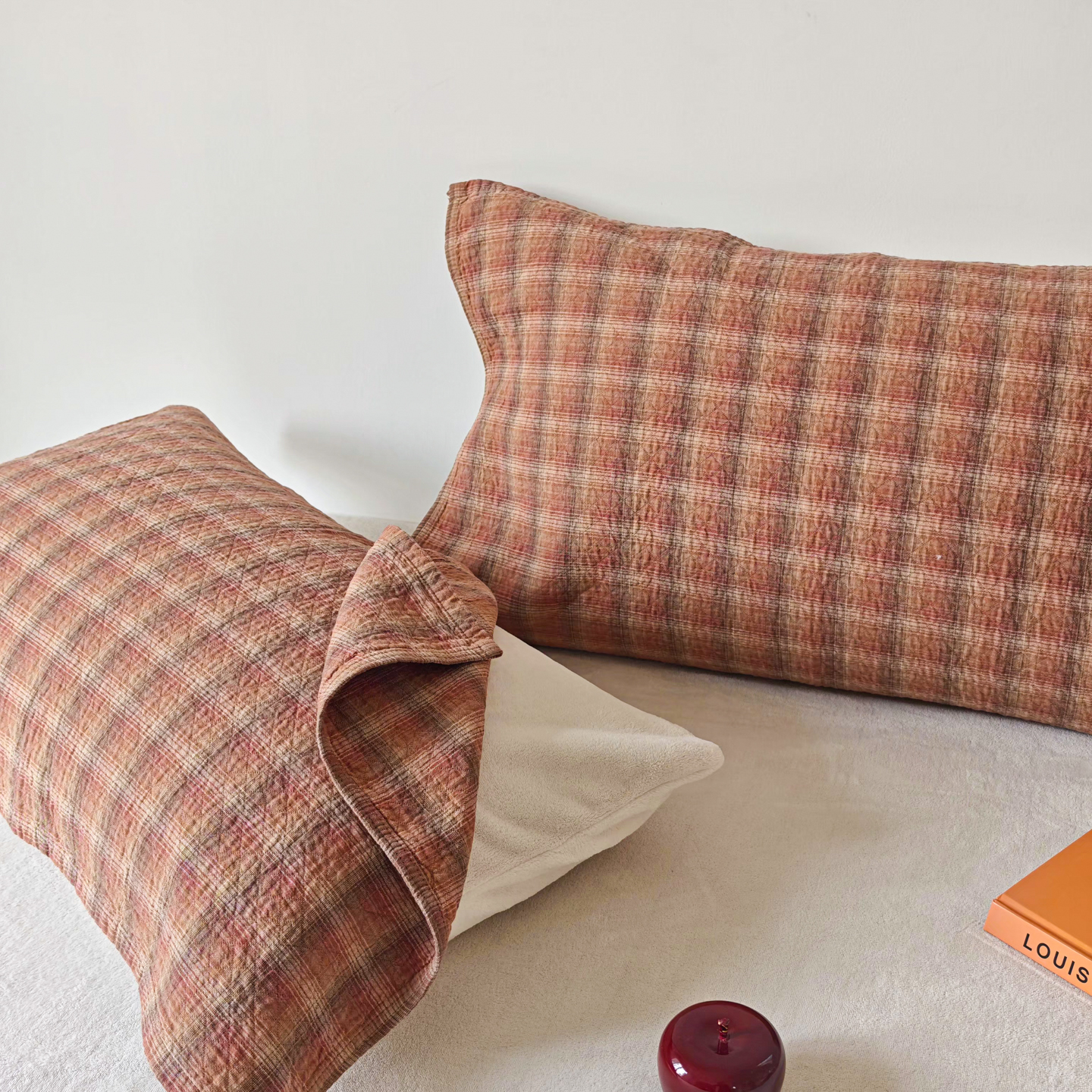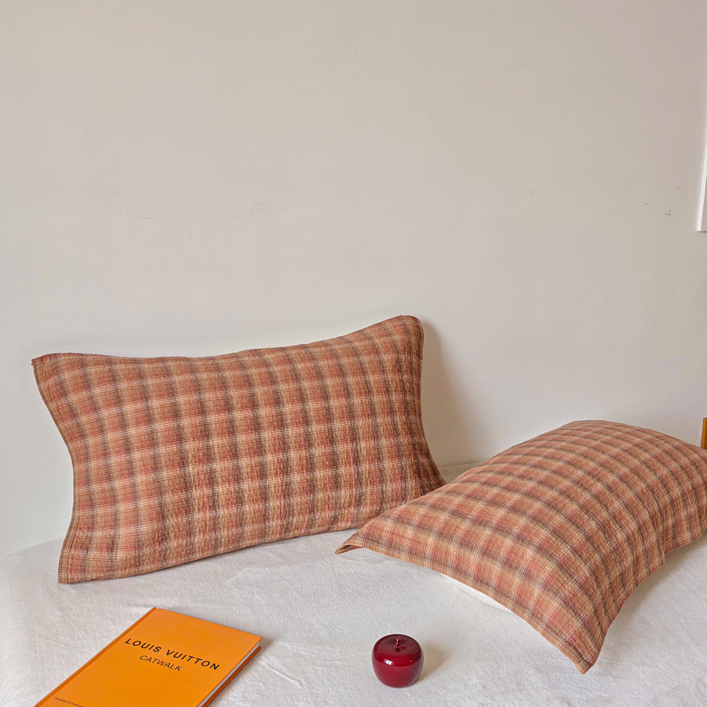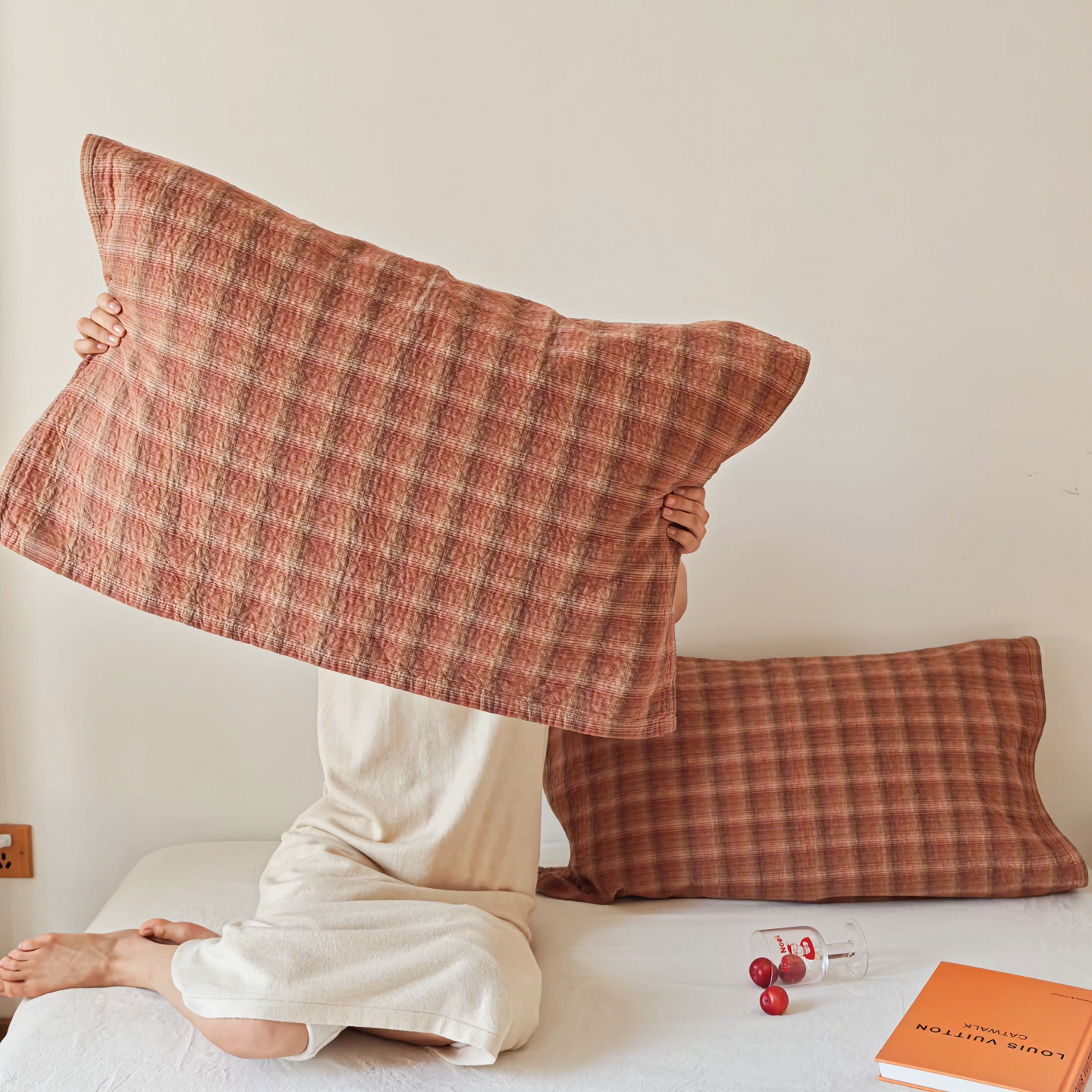 沐瑟家纺 2026新款格子款枕巾垫巾 芸柚-粉色