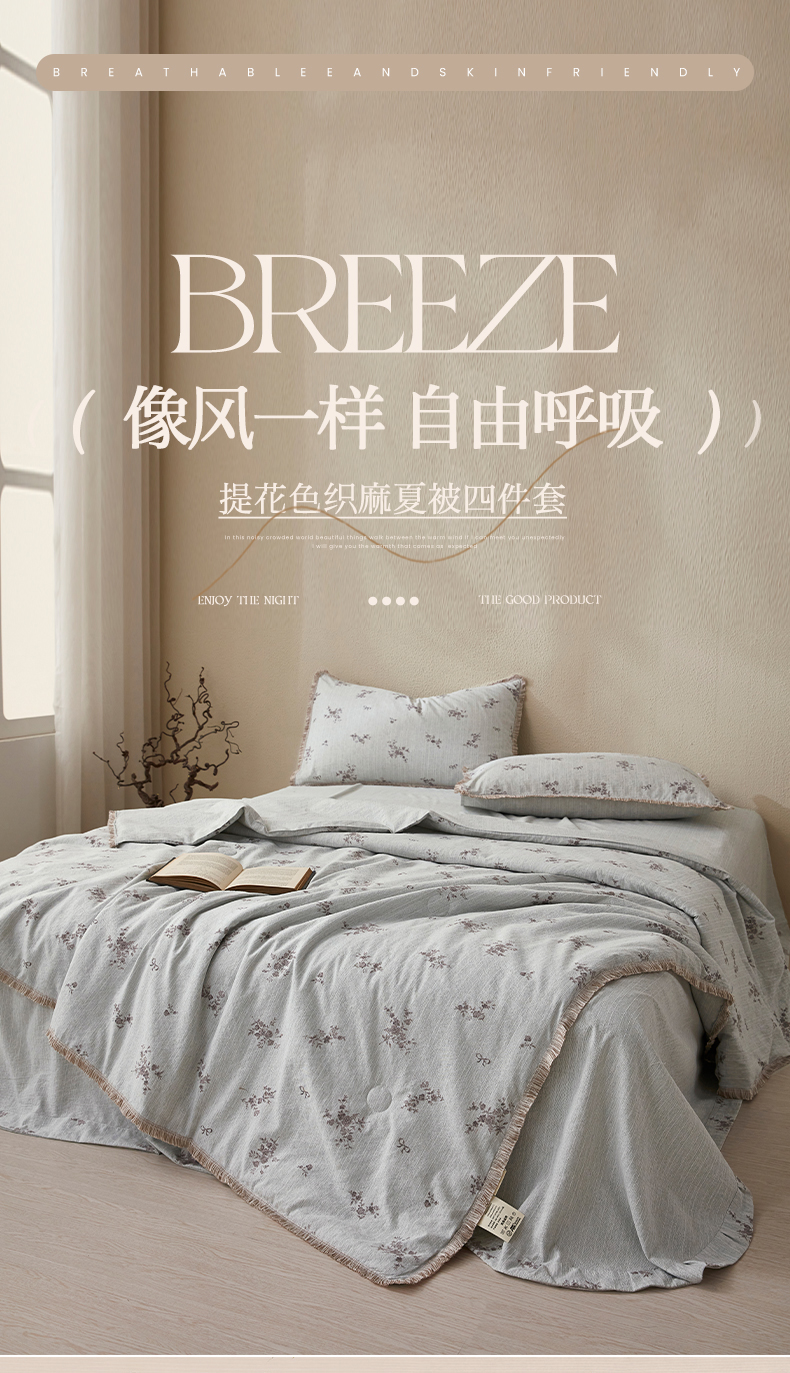 • 91家纺网 家纺一手货源 找家纺 (总)网客家纺 2026新款提花色织麻夏被四件套,宝丽咖,蝶恋花,佳人绿,敏敏,素锦灰,薰衣草紫,云溪紫