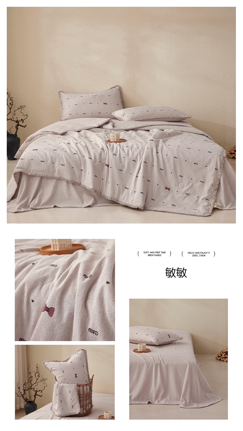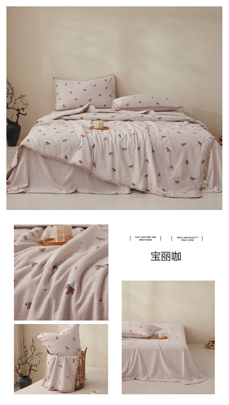 (总)网客家纺 2026新款提花色织麻夏被四件套,宝丽咖,蝶恋花,佳人绿,敏敏,素锦灰,薰衣草紫,云溪紫