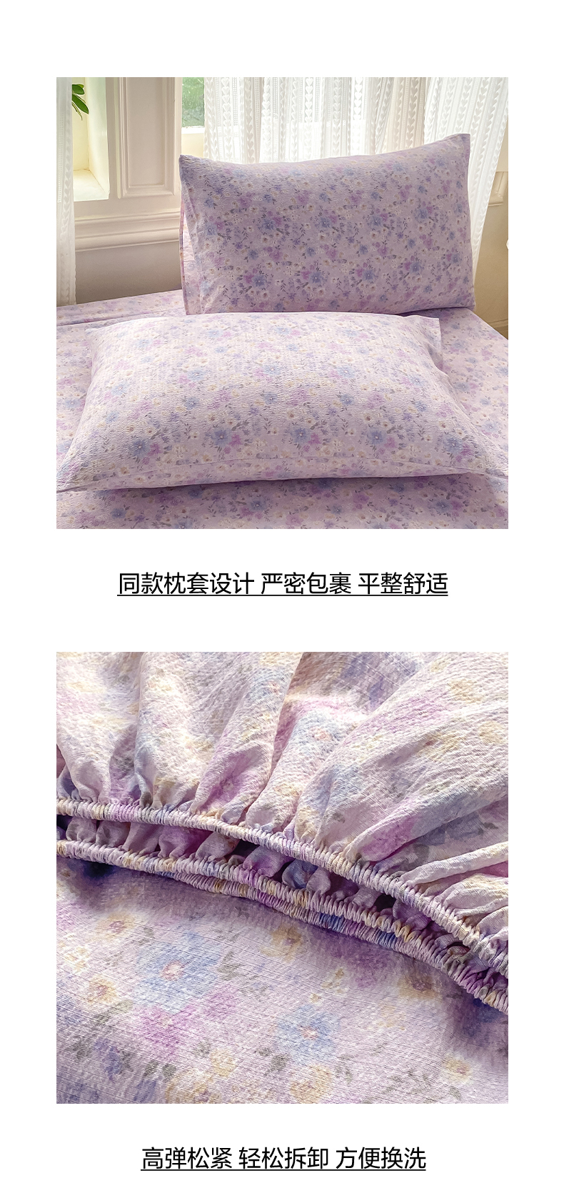 • 91家纺网 家纺一手货源 找家纺 (总)眠势力 2026新款双层纱床笠单件云感皱皱纱床罩三件套床垫保护套,紫雾花汀,缤纷彩结,彩色心情,草莓蝴蝶结,春野织梦,哈喽猫咪,海盐奶猫,花漾草莓,金蝶逐影,萌兔乐园,青樱兔语,向云端,星梦甜心,幸运小马,紫芋南瓜,组合图 仅供参考