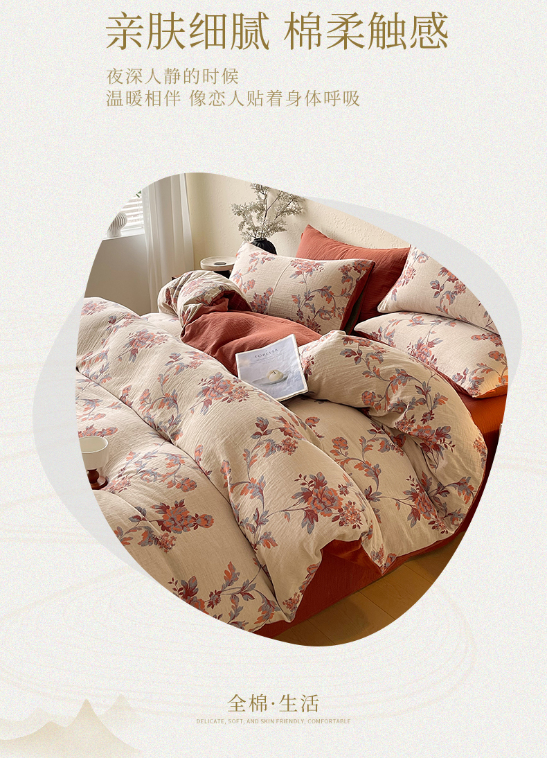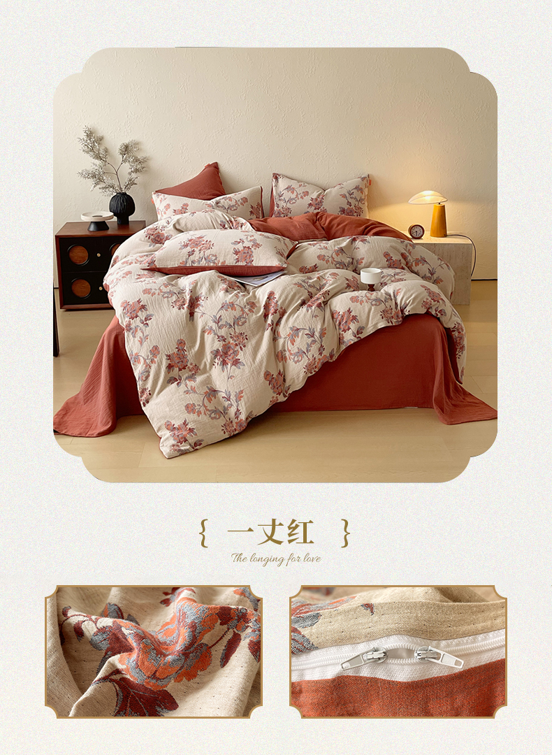 当前位置: 91家纺网 > 商品网购 > 床品套件 > 四件套 > 全棉普通四件套 > 春皖家纺 2026新款全棉纯棉拉链款双层纱四件套 一丈红