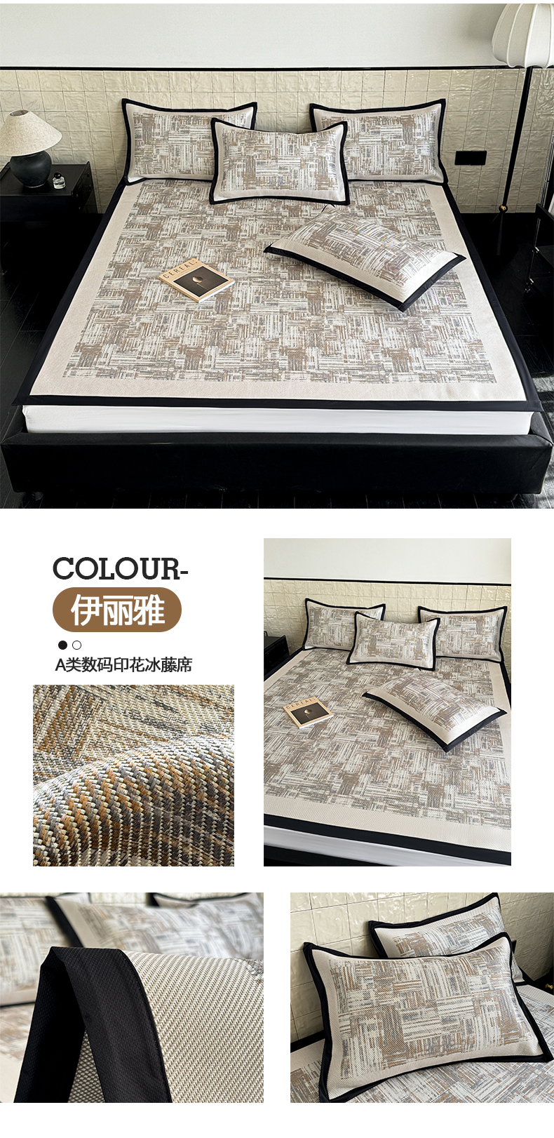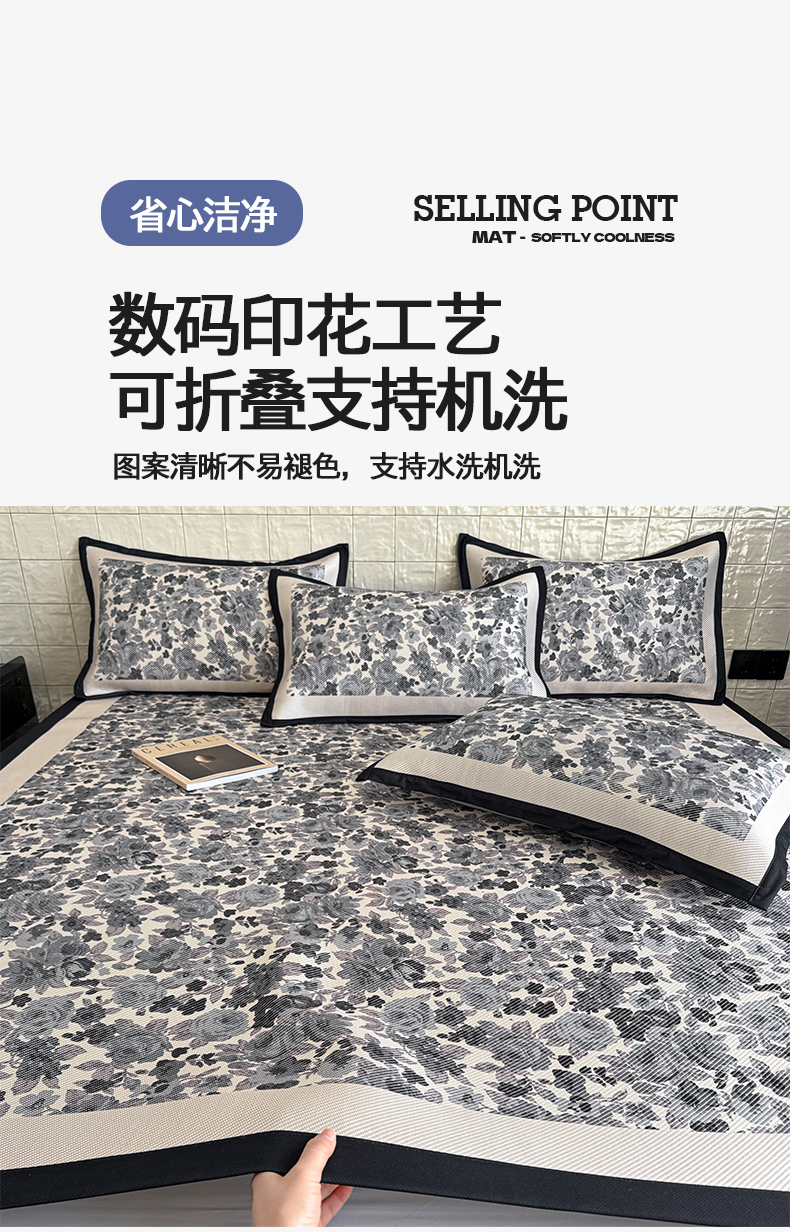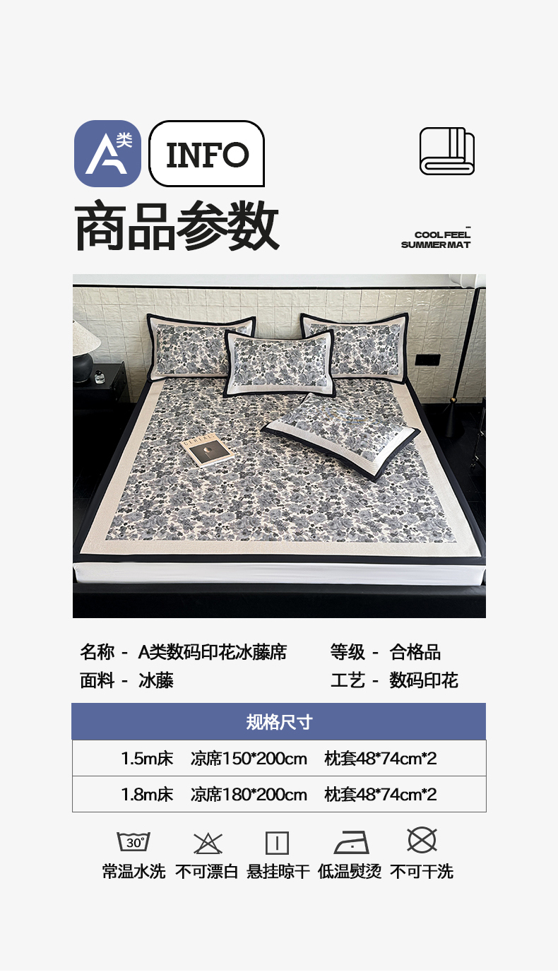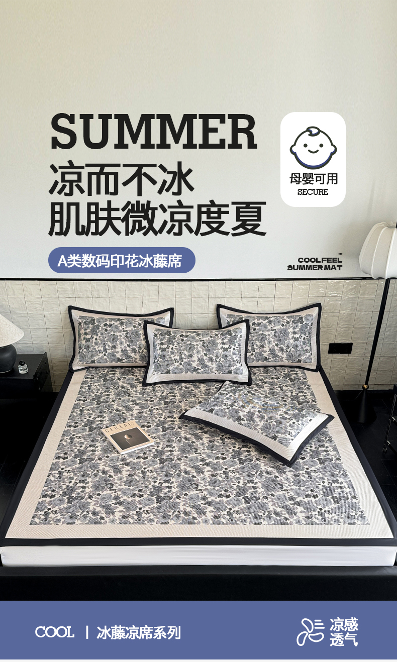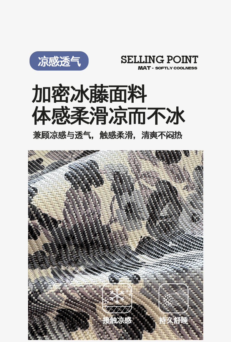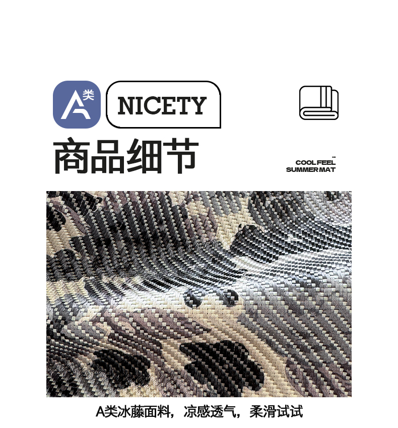 商品名称:懒猫家纺 2026新款800D数码印花大版冰藤凉席 奈洛拉