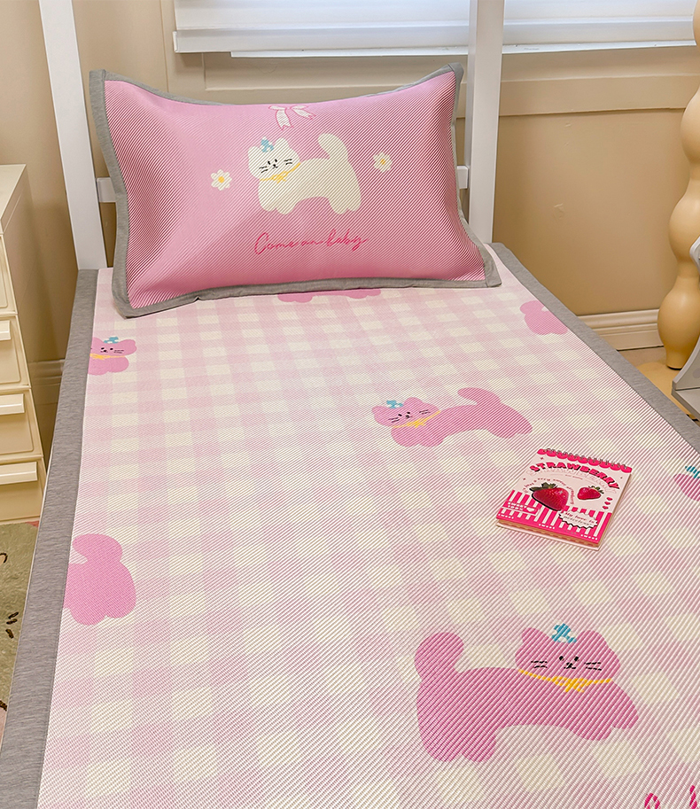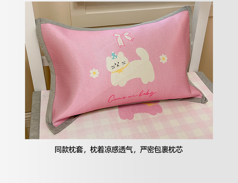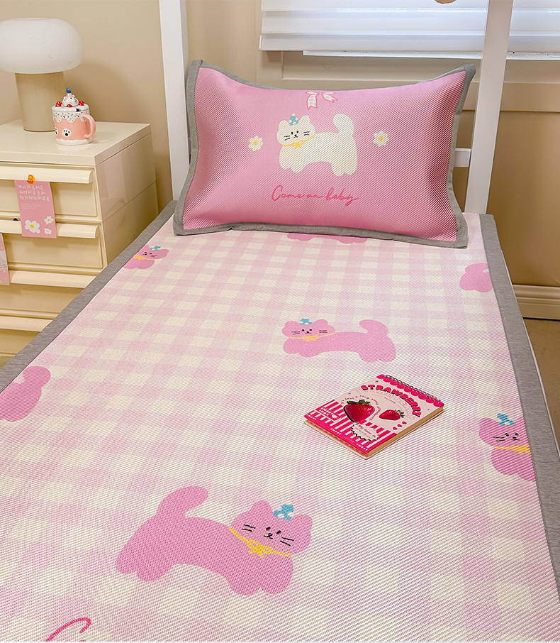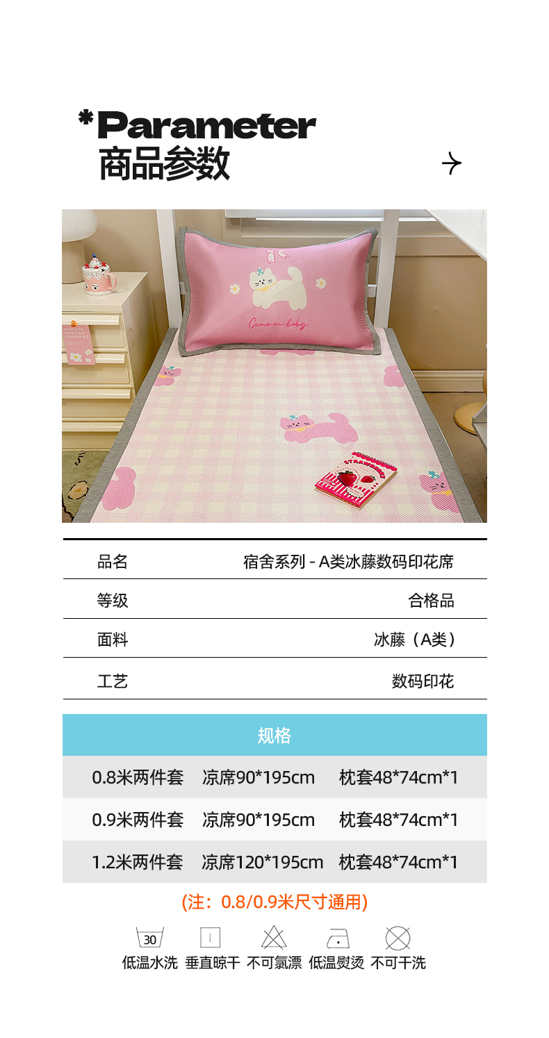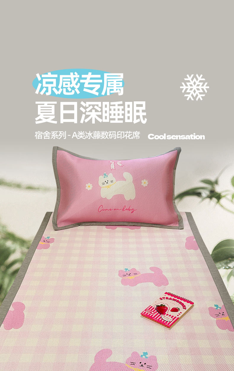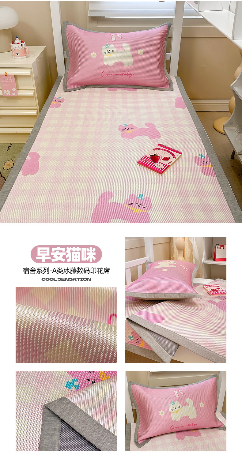 商品名称:懒猫家纺 2026新款600D数码印花大版学生宿舍冰藤凉席 早安猫咪