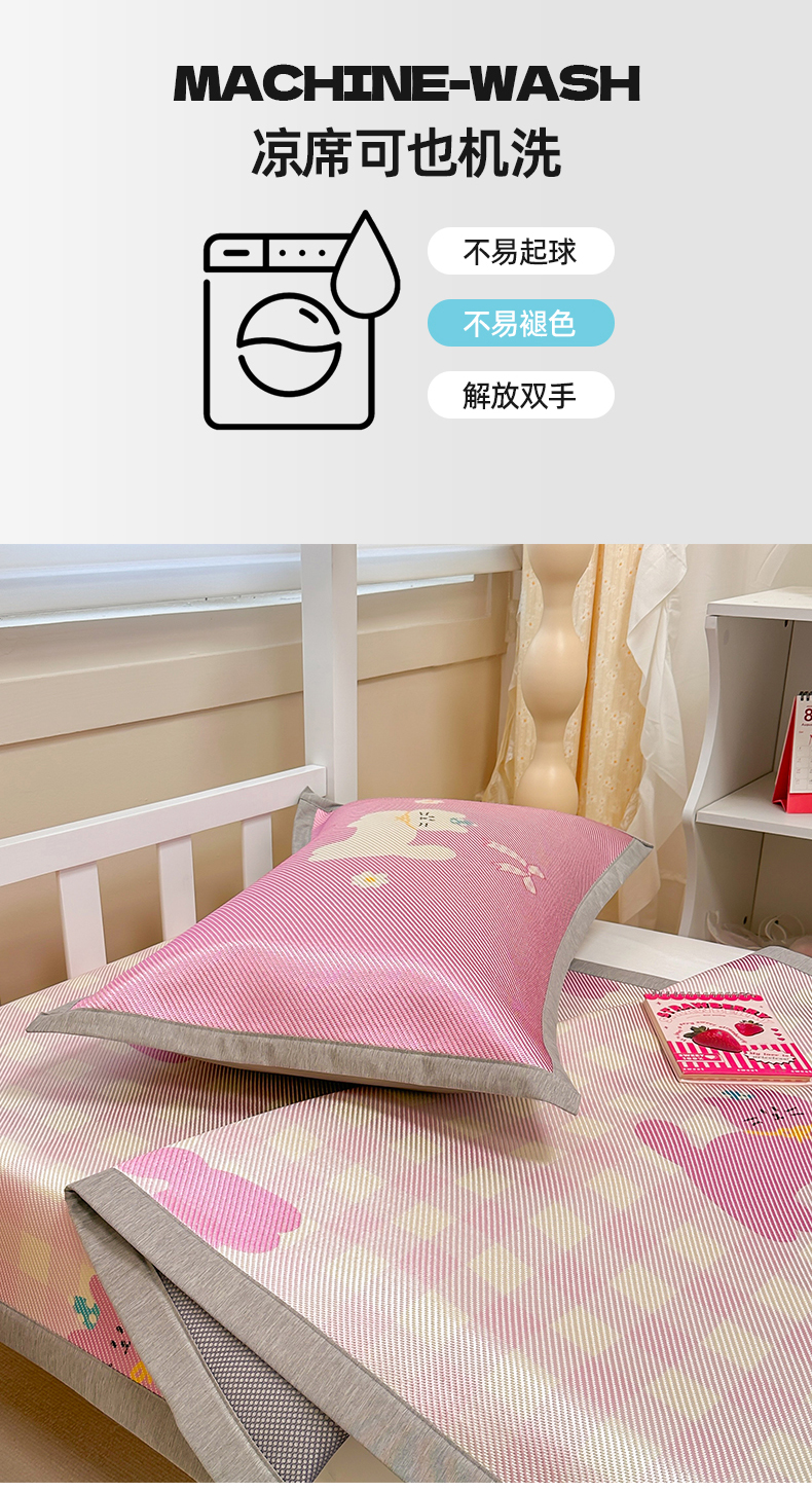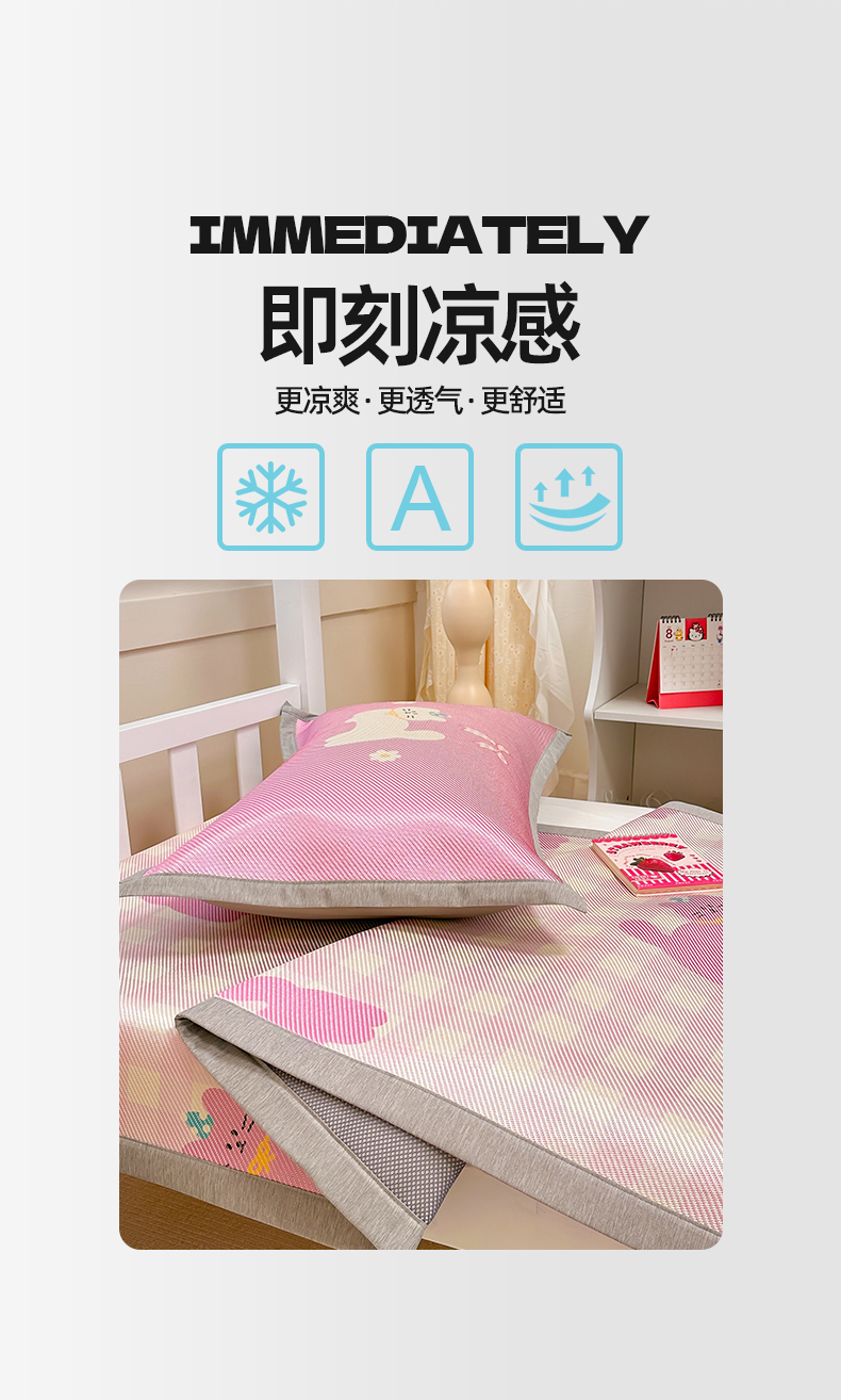 (总)懒猫家纺 2022新款学生宿舍冰丝数码印花凉席,尔雅,粉小兔,花韵,萝卜兔,清晨,手绘爱心,探索星球,甜心,小鲸鱼,小熊仔,元气兔