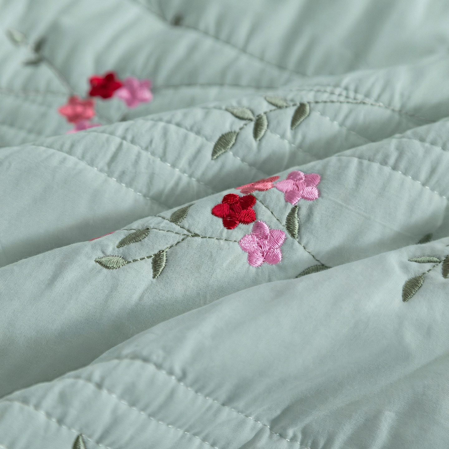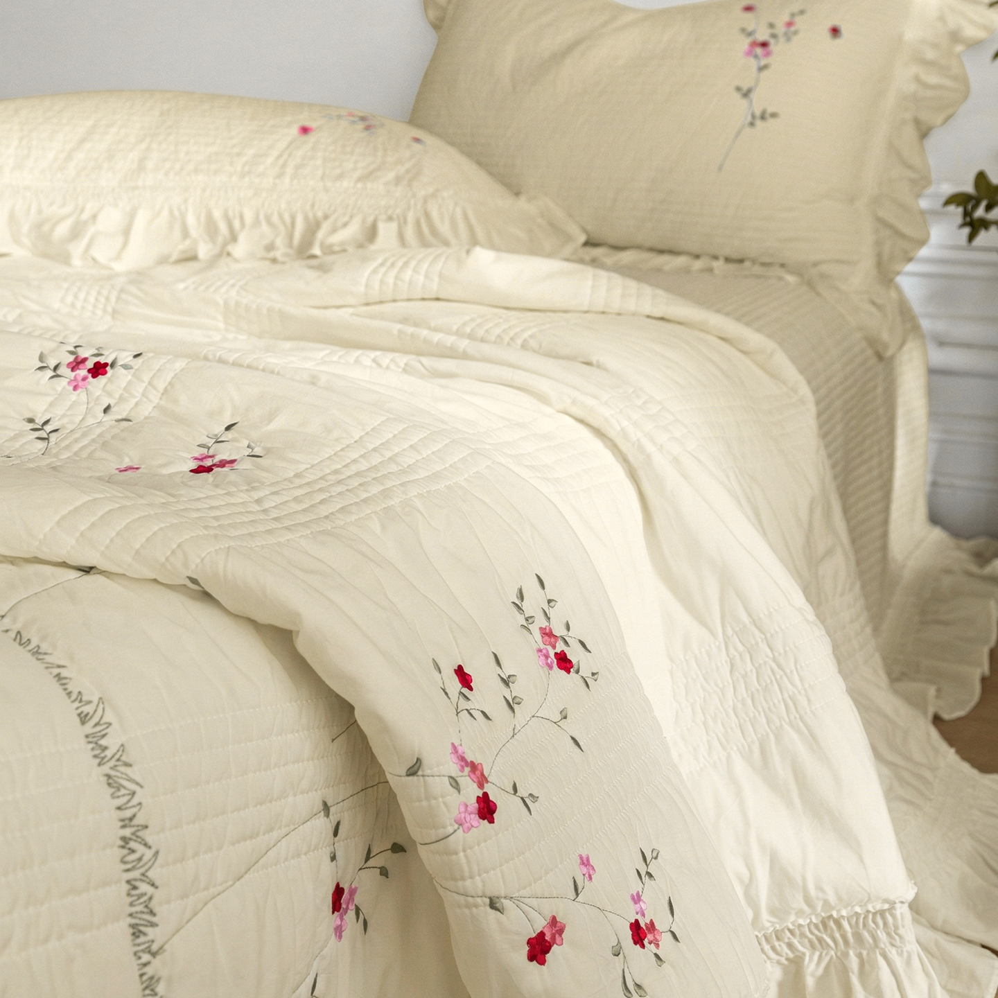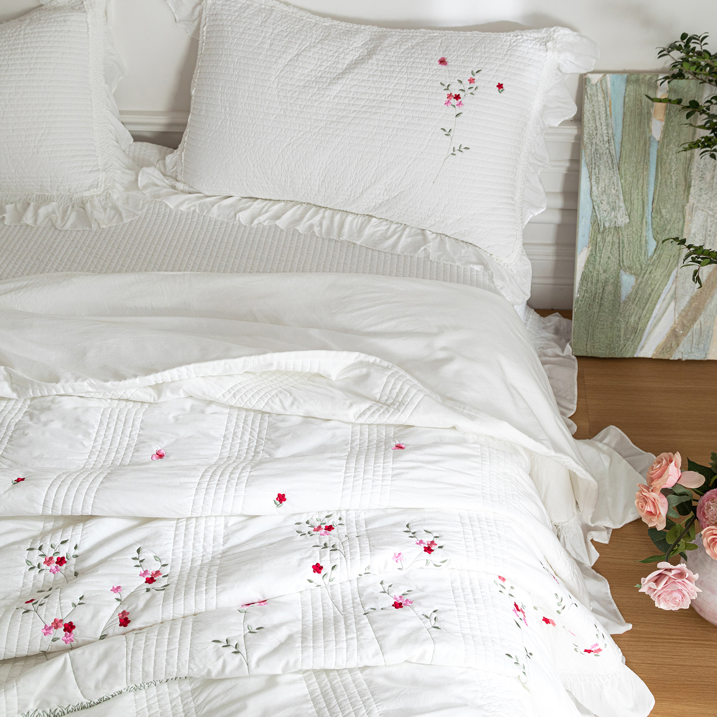 (总)上喜 2026新款棉麻小花刺绣款床盖多功能被子系列,麻本色,麻粉色