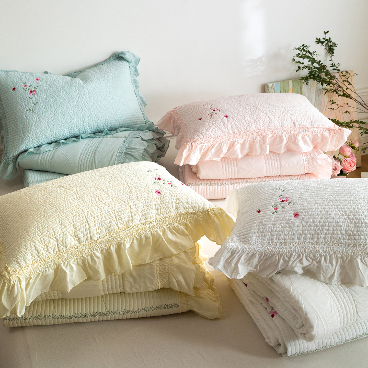 (总)上喜 2026新款韩国细纱棉床盖三件套多功能夏被四件套,纯白色,浅粉色,浅黄色,浅蓝色