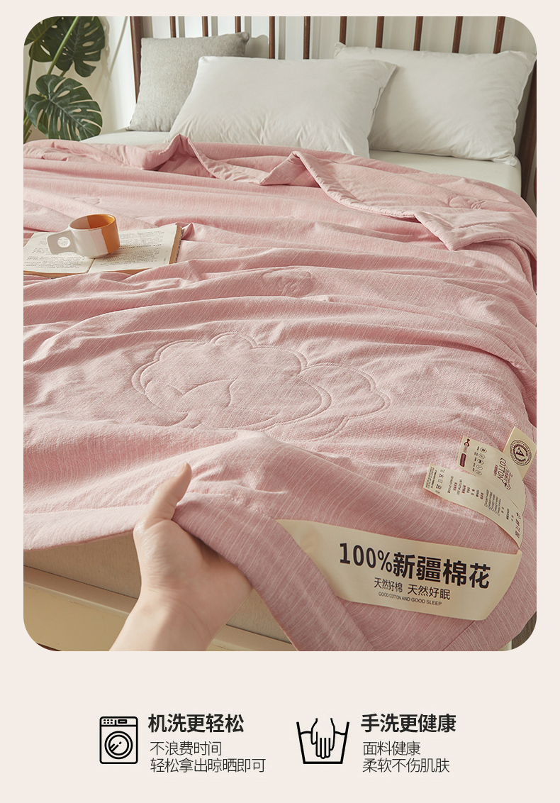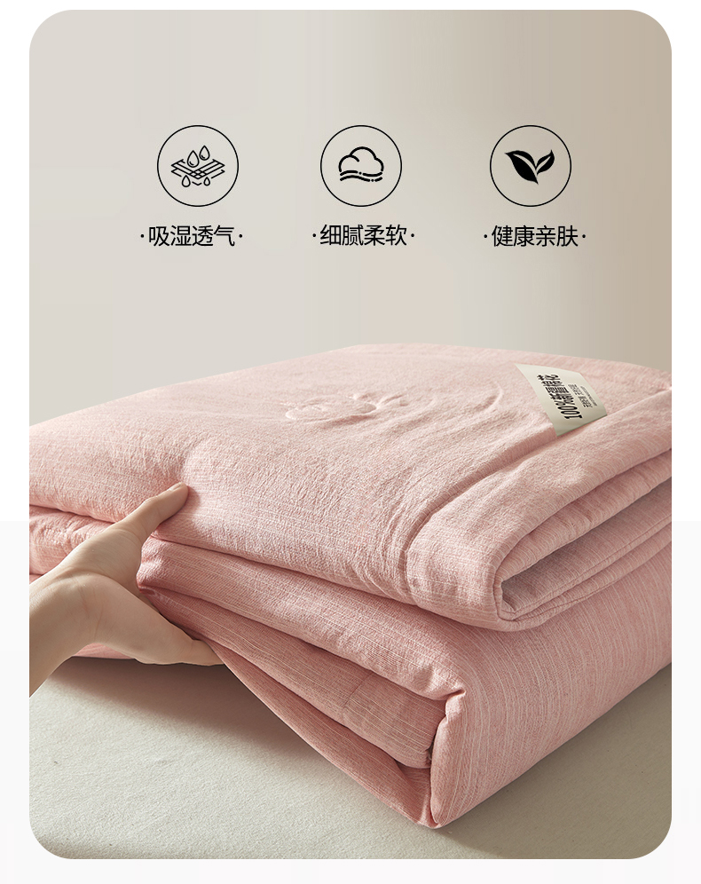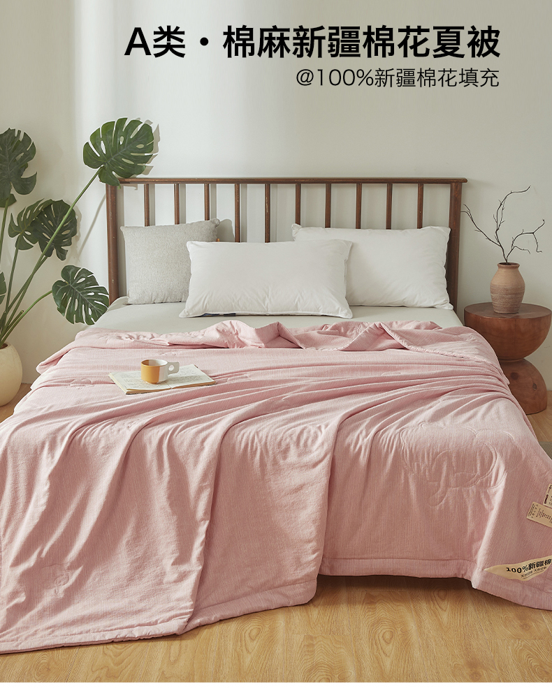 商品名称:招财星家纺 2026新款纯色棉麻100%新疆棉花夏被棉花被夏凉被空调被(带质检报告买家秀) 棉麻-粉色