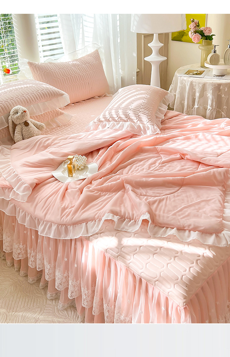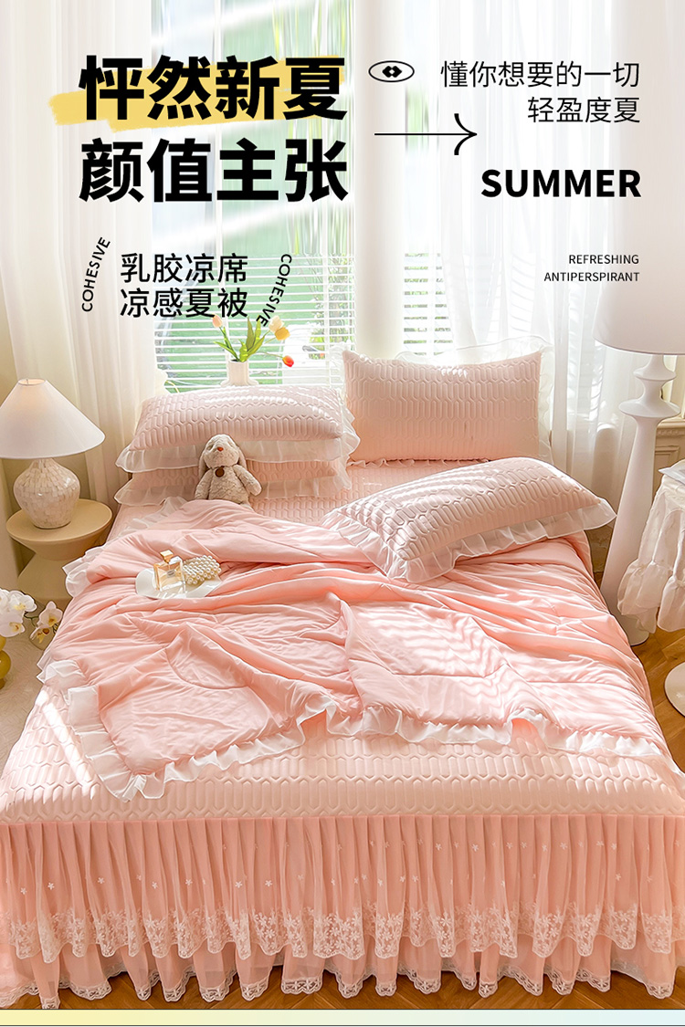 (总)后庭寝室 2026新款冰感豆豆床裙凉席夏被空调被四件套-花语系列,花语-嫩玉,花语-粉色,花语-米色,花语-嫩黄,花语-浅灰,花语-浅蓝,花语-浅紫,花语-水绿