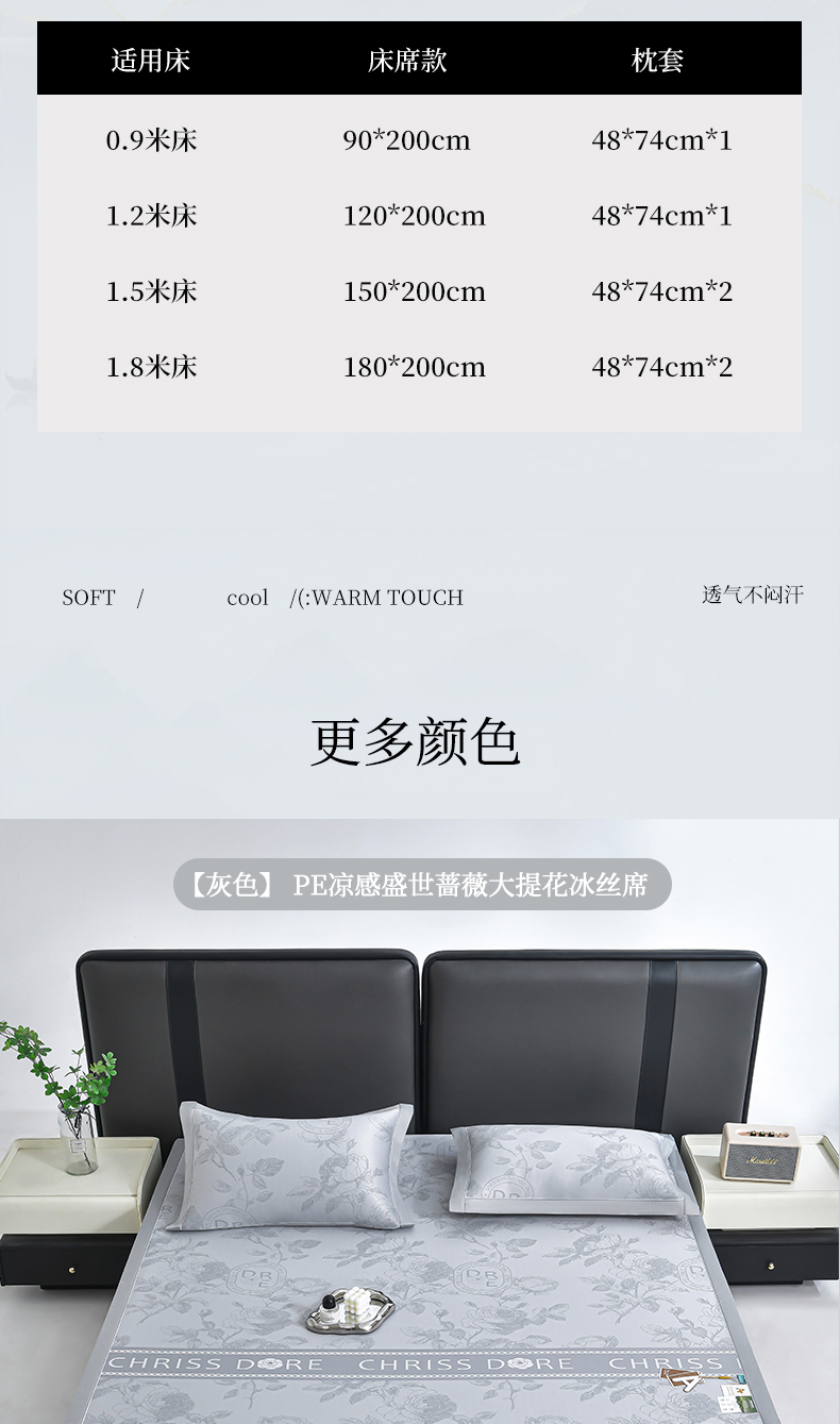 (总)小牛席业 2026春夏新款【实拍风格】PE凉感小碎花提花冰丝席凉席席子(床笠款),灰色,粉色,蓝色,抹茶,香槟