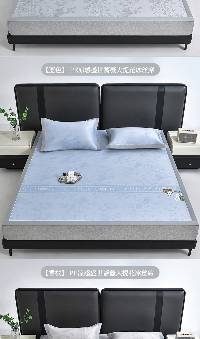 (总)小牛席业 2026春夏新款【实拍风格】PE凉感小碎花提花冰丝席,灰色,粉色,蓝色,抹茶,香槟