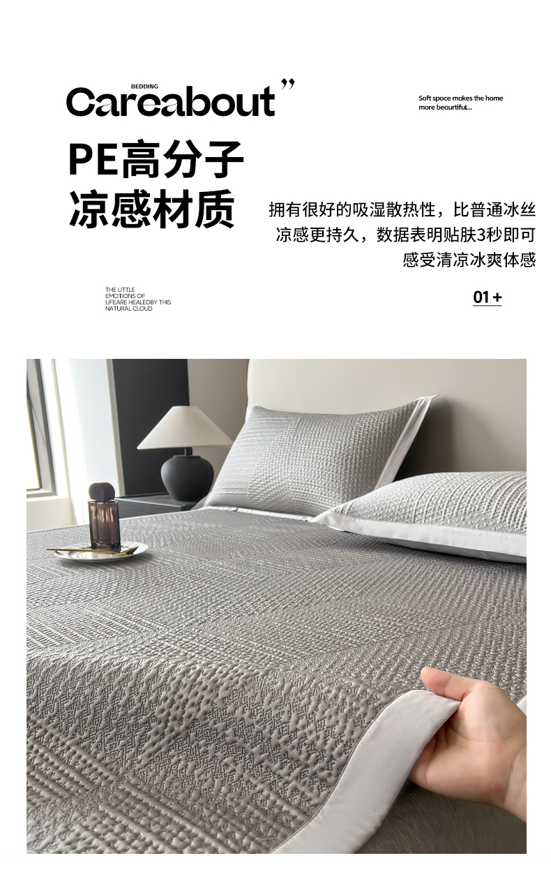 (总)禧禾 2026新款PE中分子A类泡小豆暗纹提花凉席席子三件套-星涧,星涧-浅灰,星涧-水粉,星涧-水蓝