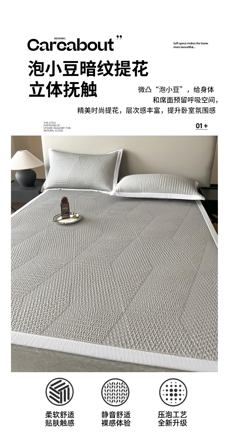 商品名称:禧禾 2026新款PE中分子A类泡小豆暗纹提花凉席席子三件套-星涧 星涧-浅灰