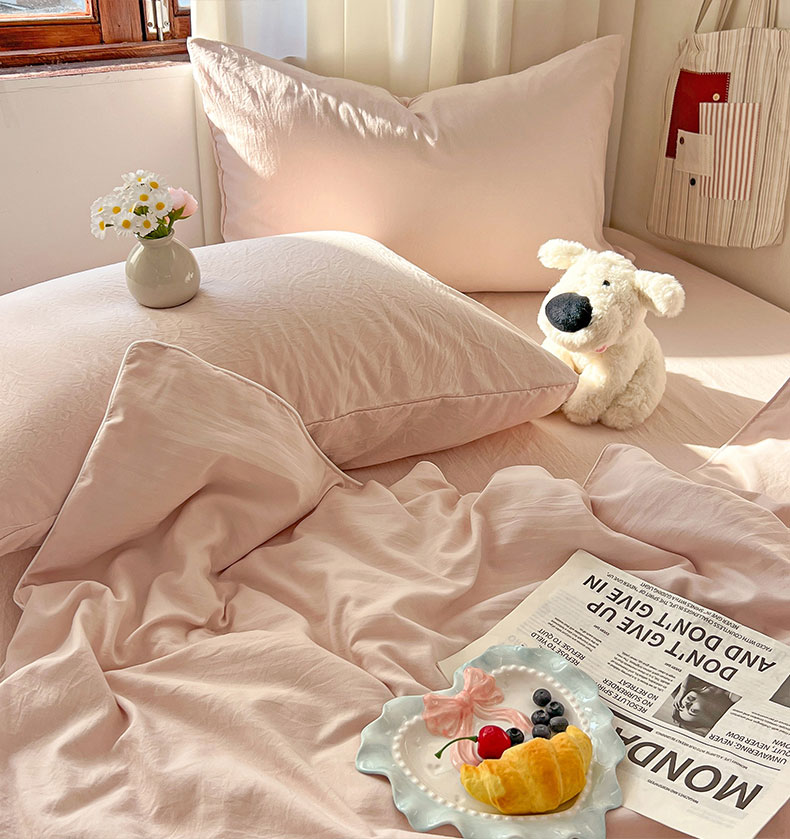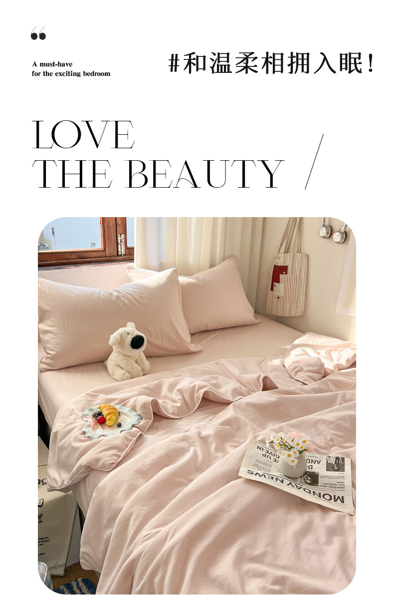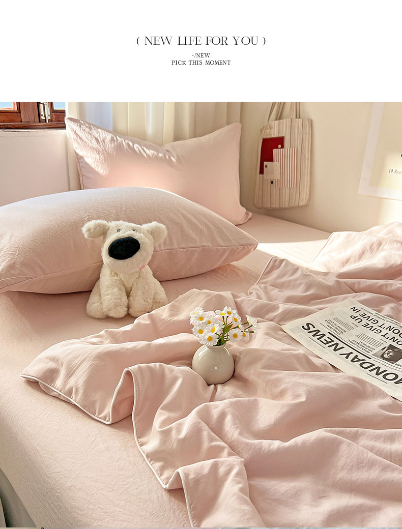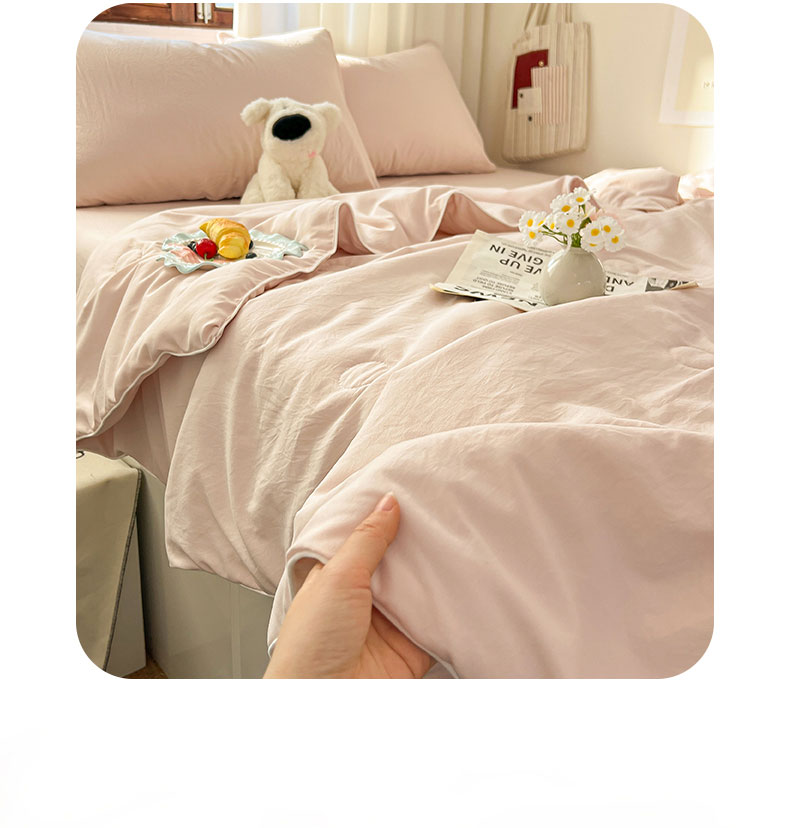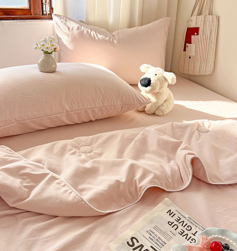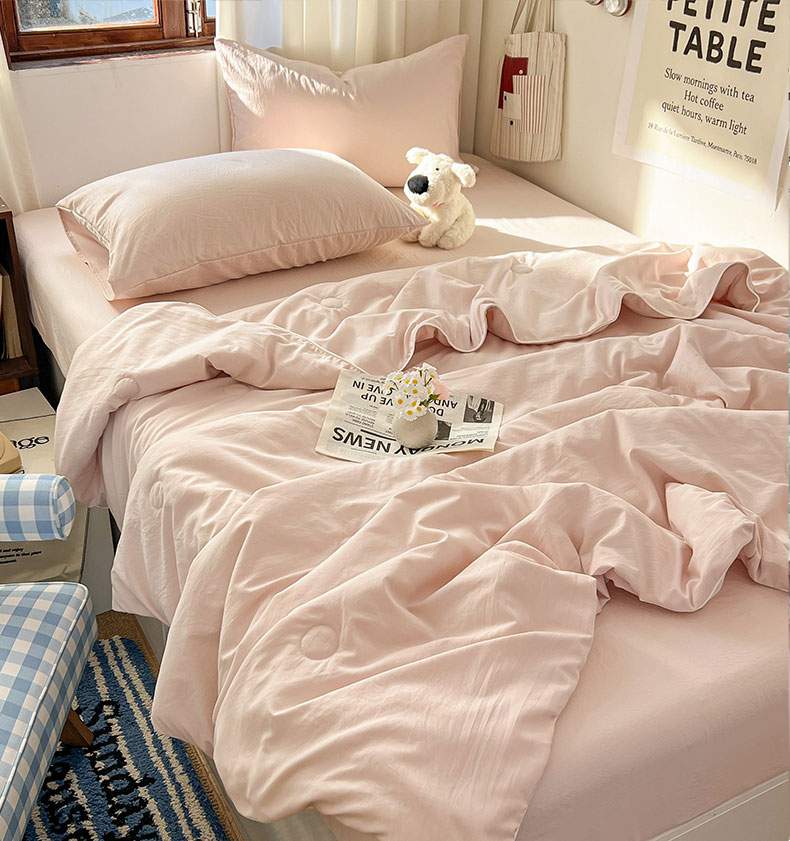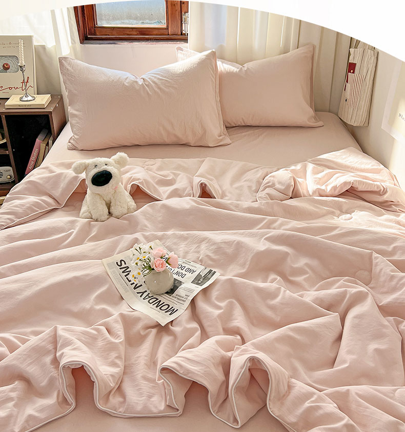 当前位置: 91家纺网 > 商品网购 > 床品套件 > 四件套 > 夏被四件套 > 冕悠家纺 2026春夏新款A类高克重超级无敌柔软水洗棉拼色夏被空调被夏凉被四件套 藕粉-夏凉被
