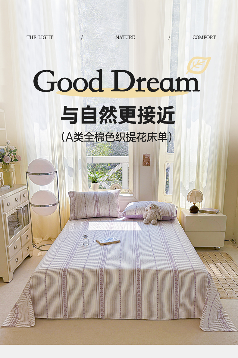 • 91家纺网 家纺一手货源 找家纺 灰鲸 2026新款全棉纯棉色织提花床单单床单床单单件 木槿-紫