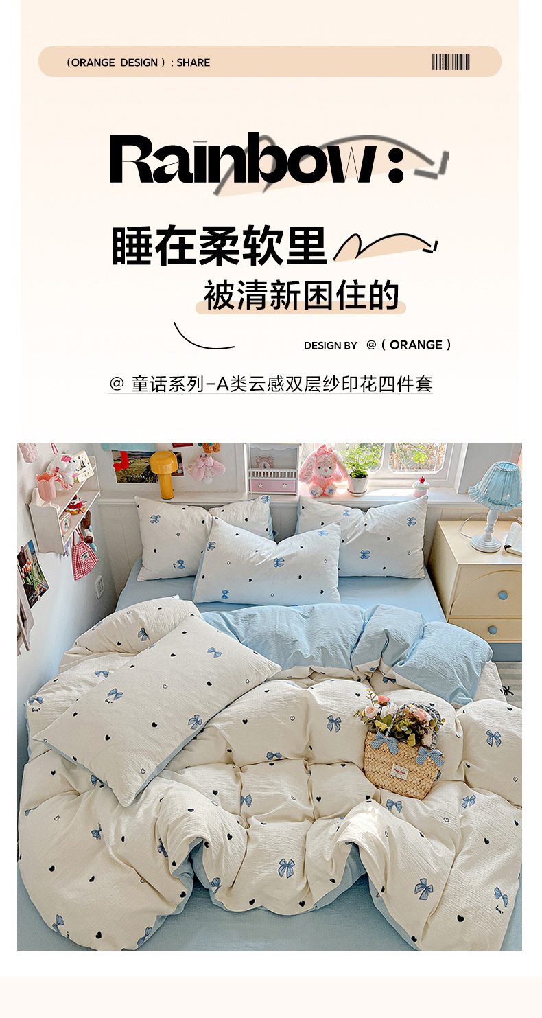 (总)朵朵家纺 2026新款高级感轻奢复古美拉德色系双层纱泡芙棉床品四件套加厚水洗双层纱软,马上有福,紫苏,绿樱,蓝色泡芙狗,花姿,粉红波点,春风拂梦,爱丽丝兔,马上有福2,漫野,木马拾光,暮光,奶芙兔,奶蓝甜结,青花瓷,清欢,素碟吟,晚棠,盐系格绊,知音咖,紫萝漫想,紫韵,醉玲珑