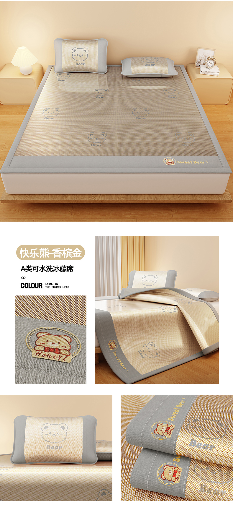 当前位置: 91家纺网 > 商品网购 > 床上用品 > 凉席 > 冰丝席 > 卡初家居(原微来) 2026春夏新款快乐熊水洗冰藤床席款床笠款 快乐熊-优雅粉-床笠款