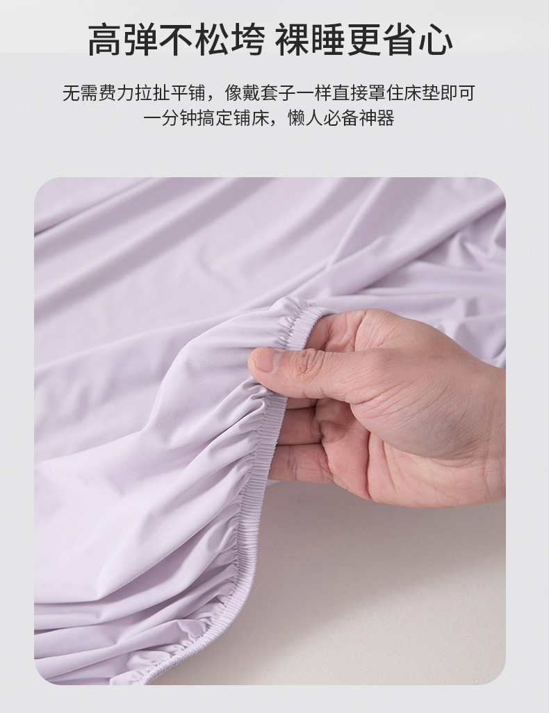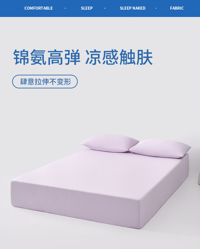 商品名称:其奥家纺 2026新款锦氨凉感床笠三件套A类耐磨5级0.35凉感有检测报告 丁香紫