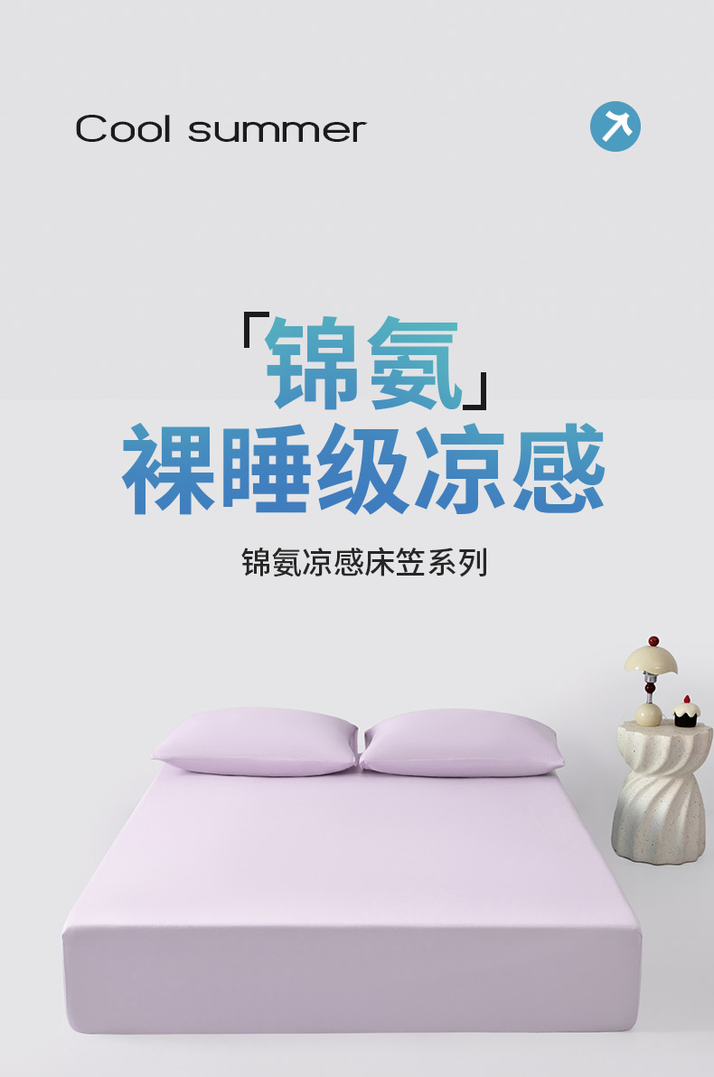 其奥家纺 2026新款锦氨凉感床笠三件套A类耐磨5级0.35凉感有检测报告 丁香紫