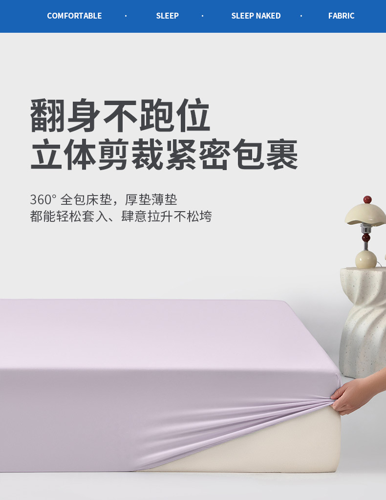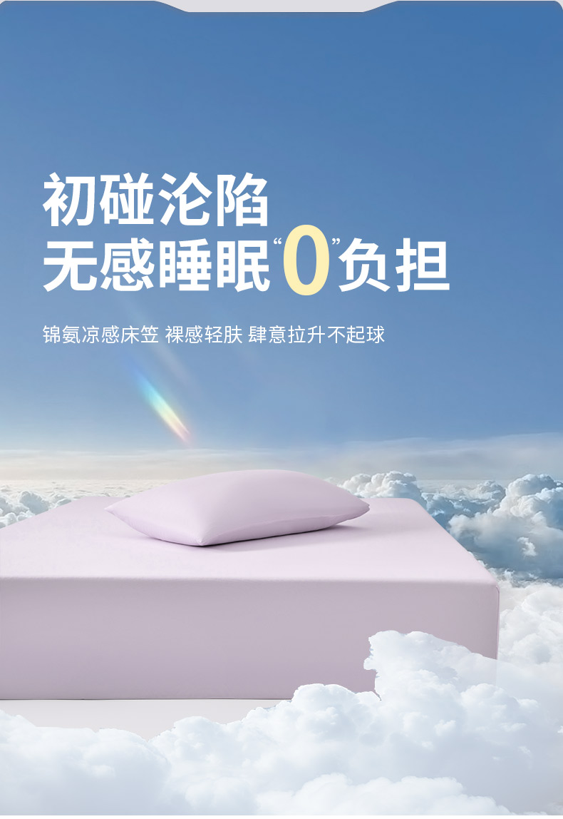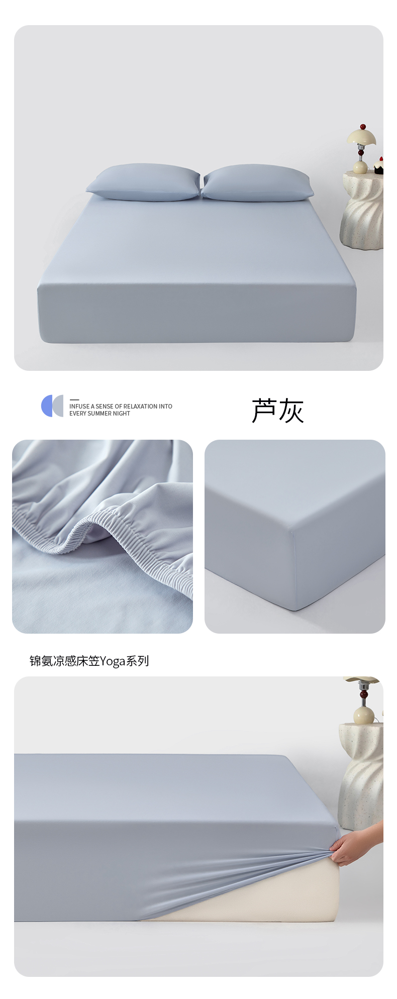 (总)其奥家纺 2026新款锦氨凉感床笠三件套A类耐磨5级0.35凉感有检测报告,香草绿,丁香紫,芦灰,奶油黄,晴蓝,雾粉