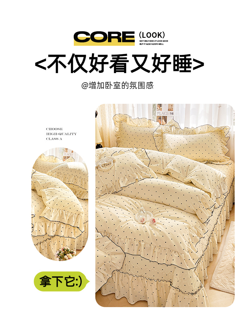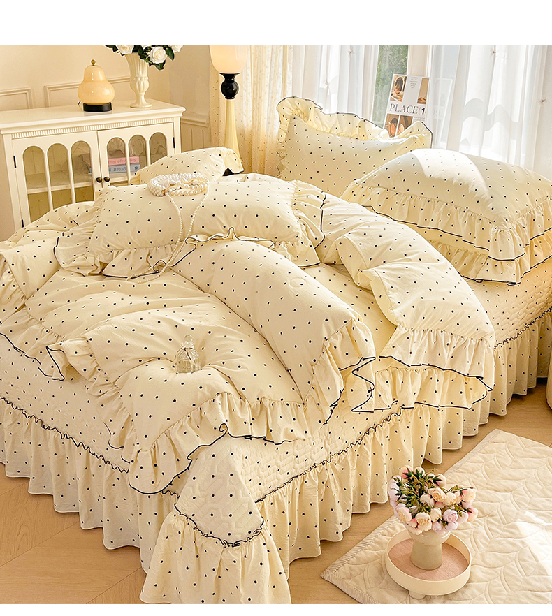 当前位置: 91家纺网 > 商品网购 > 床品套件 > 四件套 > 其它四件套 > 孟鑫家纺 2026韩版法式公主风水洗棉床盖款多功能二合一被套 夏被床盖四件套-小清新系列 波点