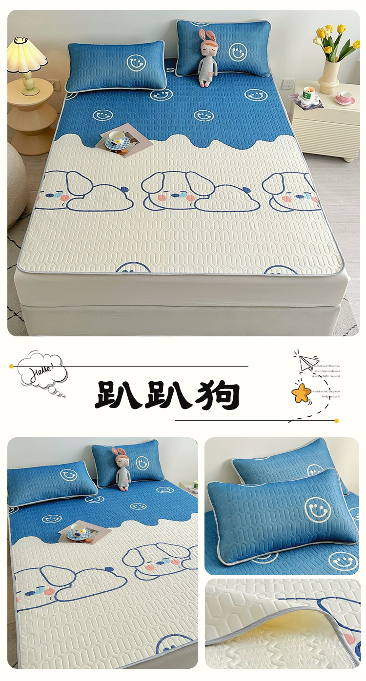 (总)佳鸿家纺 2026新款卡通乳胶凉席二件套三件套冰丝软席空调席跨境爆款,抱抱,柴犬,柯基,恐龙,萝卜兔,趴趴狗,太空星球