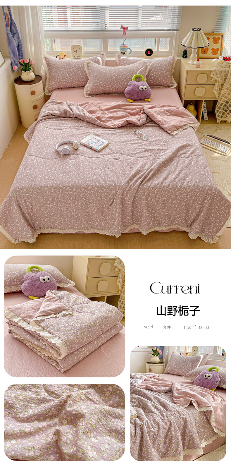 (总)2026新款云感皱皱纱全棉花边款夏被四件套,百福兰,春天里,春晓,豆蔻,蝴蝶梦,可颂,兰黛,山野栀子,素颜,太妃糖,微凉薄荷,心动,遇见,芝士奶酪,紫爱心,紫苏,白茶绿,初恋,蜡笔画,莱茵河畔,桃花诺,小黑兔,春不晚,春日小熊,可颂,陌上花开,莫奈,若欢-绿,若欢紫色,舒芙蕾,田园拾趣-黄,兔小姐,郁金香小兔,波点小兔粉,波点小兔兰,花园兔,情人节,山野栀子,十里桃花粉,十里桃花紫,舒芙蕾,太妃糖,夏天,运动健将熊, 白月光,缤纷几何,格格西高地,海盐蓝小格,黎漫,木槿绿,奶油泡芙,欧若拉,桃夭,甜茶,小晴天,芋泥紫小格,紫色蝴蝶结
