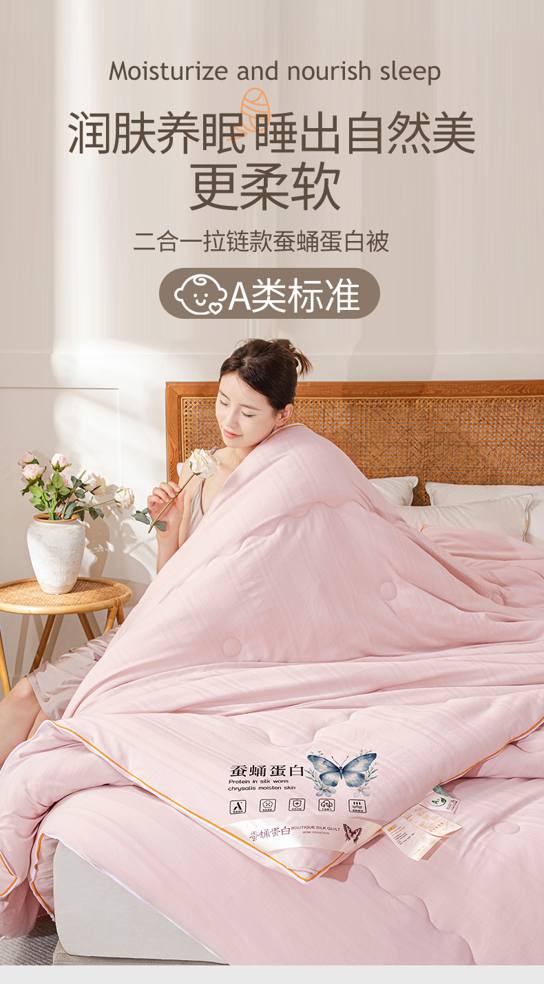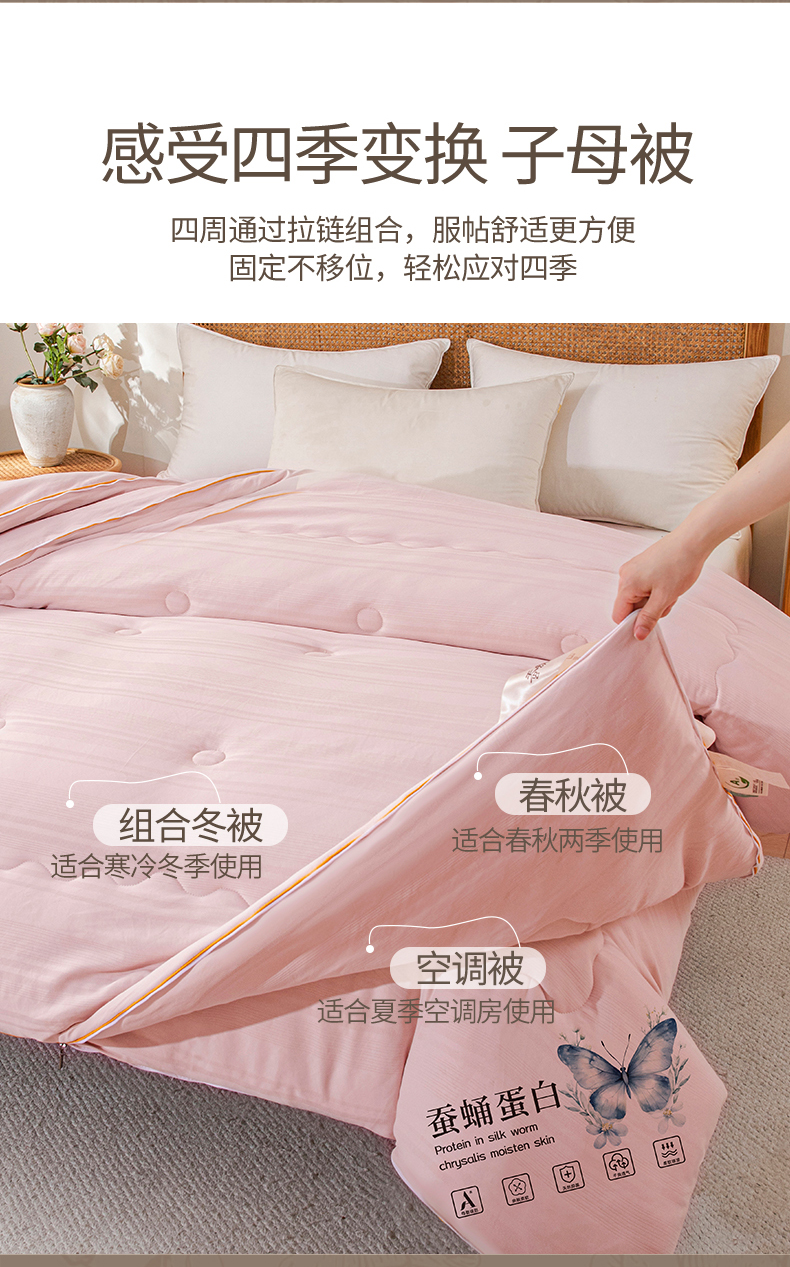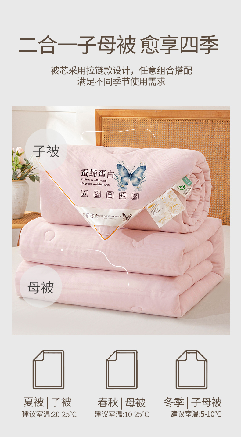 • 91家纺网 家纺一手货源 找家纺 (总)小禹仔家纺 2026新款二合一拉链款蚕蛹蛋白子母被冬被春秋被夏被被子被芯加厚棉被-蝶梦系列,蝴蝶-米白,蝴蝶-粉,蝴蝶-灰