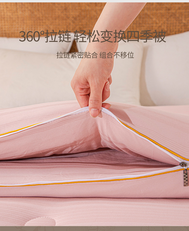 • 91家纺网 家纺一手货源 找家纺 小禹仔家纺 2026新款全棉提花拉链款蚕蛹蛋白子母被冬被春秋被夏被被子被芯加厚棉被-缎条系列 缎条-豆沙