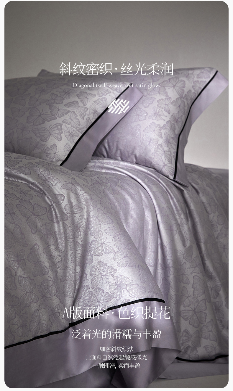(总)金奇达家纺 2026新款丝光色织提花四件套-蝶梦浮光系列(标准号全网控价(折后券后)不低于359元 会员减50),蝶梦浮光- 琉璃紫,蝶梦浮光-雾霭灰,蝶梦浮光-奶昔杏,蝶梦浮光-织云橙