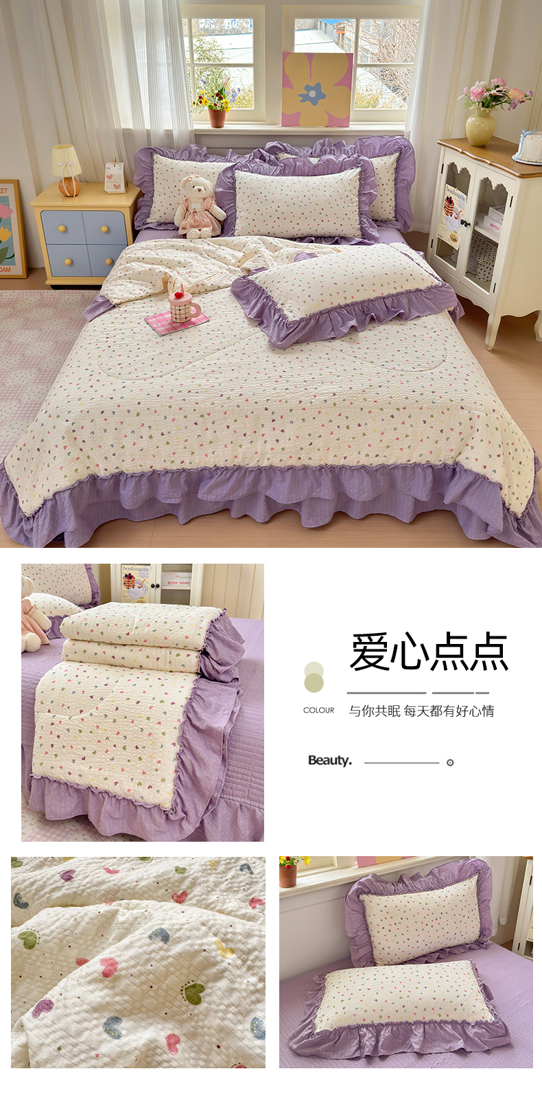当前位置: 91家纺网 > 商品网购 > 床品套件 > 四件套 > 夏被四件套 > 禾沐 2026新款云感泡芙棉床盖夏被四件套AA款(夏被款) 爱心点点