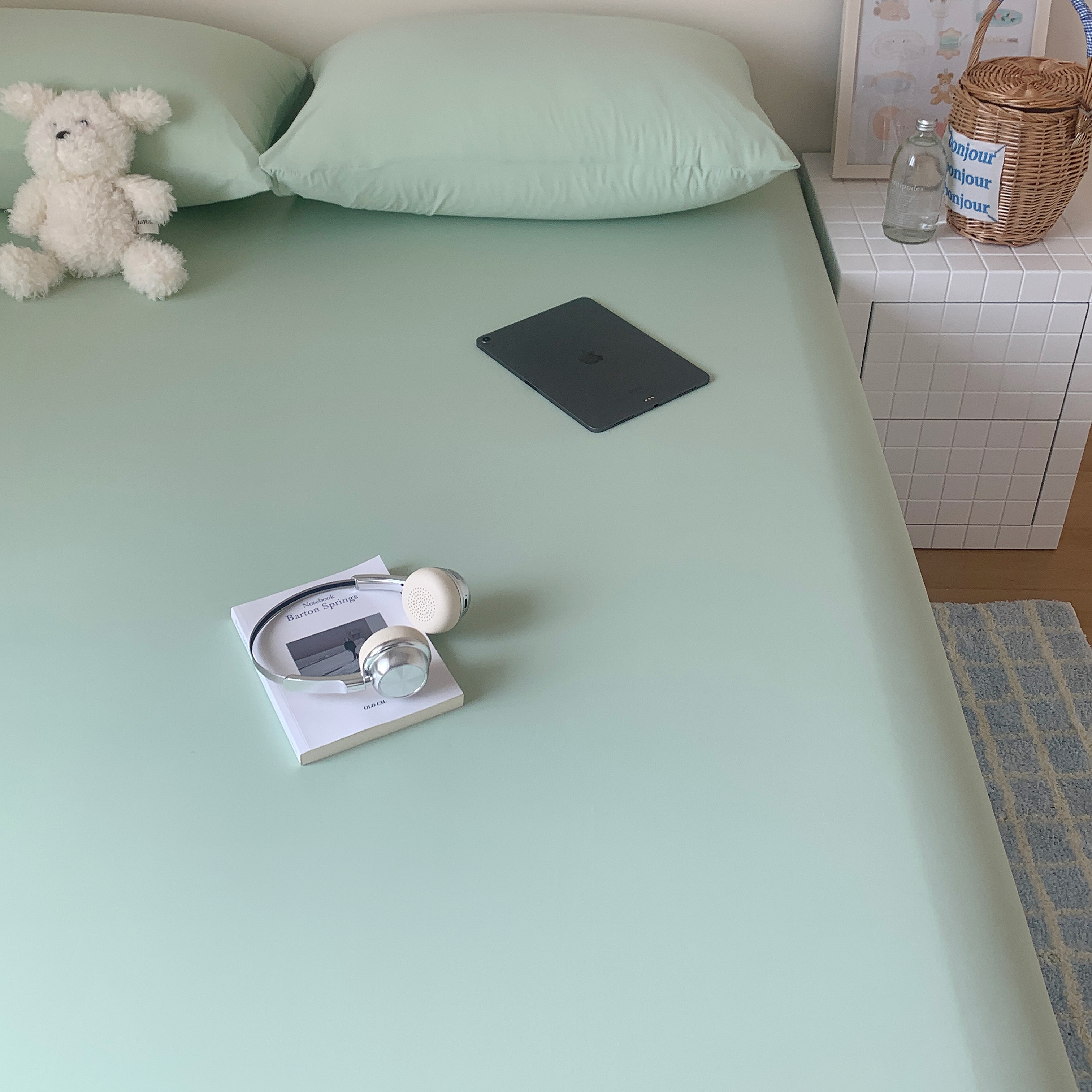 (总)桃喜 2026新款2026新款纯色165gA类锦氨凉感冰皮床笠单品床笠有凉感值检测报告,草绿,蜜桃粉,木槿紫,奶茶咖,奶昔黄,深睡蓝,炭灰色,天空蓝