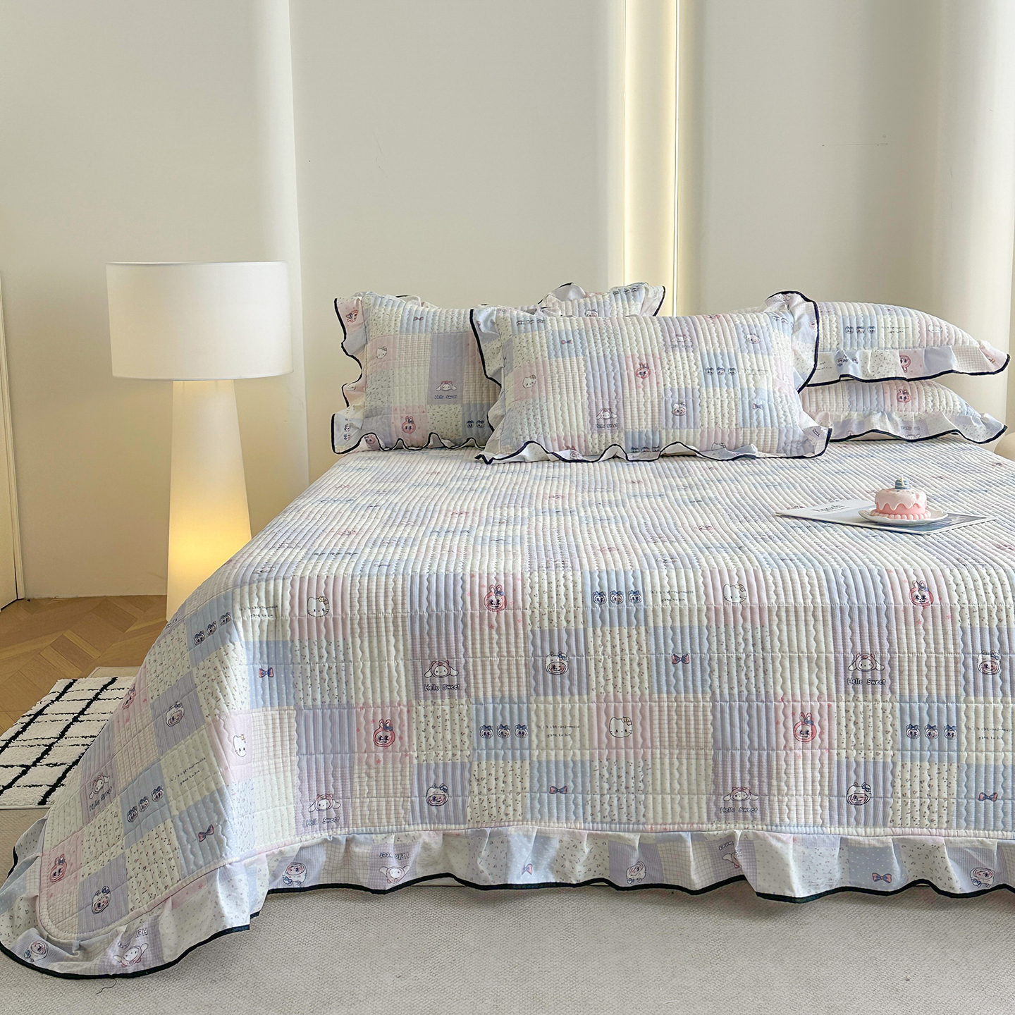 (总)幸嘉轩 2026新款双层纱花边床盖单件加厚夹棉云感皱皱纱花边款床单三件套,蓝布布,春华浓,花姿-豆沙,莫奈-紫,萌友聚会,快乐小象,醉玲珑,半岛花园,紫苏,蓝色泡芙狗,风的印记,北野,一颗樱桃,豆蔻年华-紫,兔野仙踪,吉祥小马,花香容