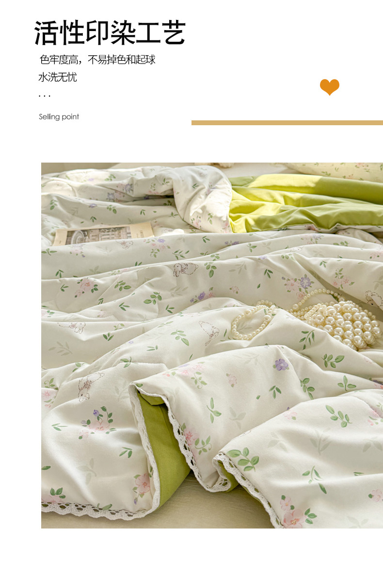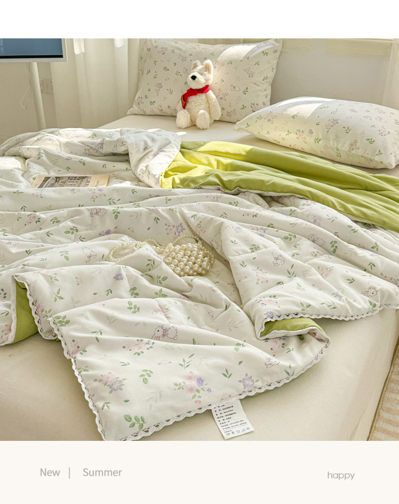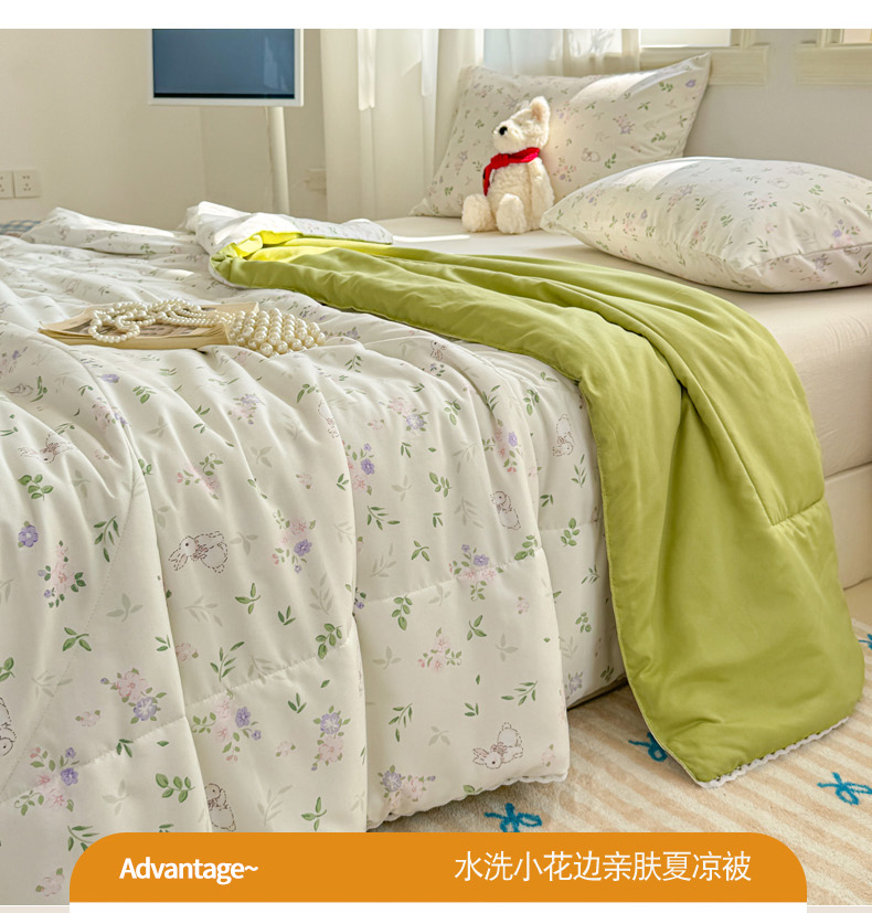 慕尚家纺 2026新款水洗棉可爱小清新夏被空调被夏凉被 花朵兔