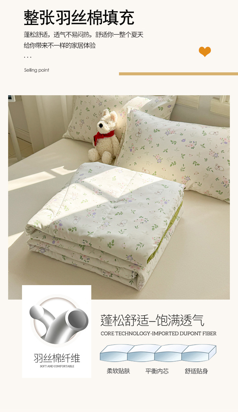 商品名称:慕尚家纺 2026新款水洗棉可爱小清新夏被空调被夏凉被 花朵兔