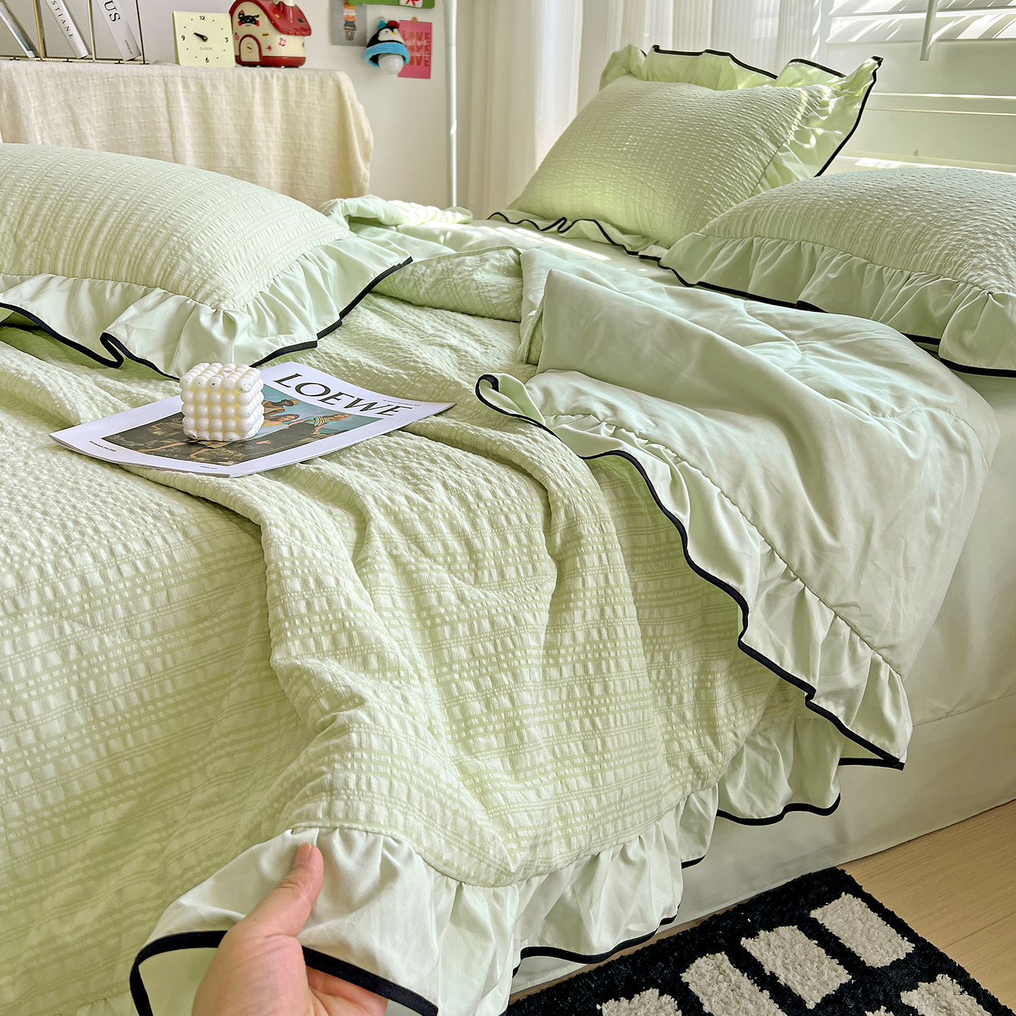 (总)一比一家纺 2026新款云感皱皱纱全棉花边款夏被四件套【控价109元】,春天里,豆蔻,蝴蝶梦,兰黛,山野栀子,素颜,微凉薄荷,心动,遇见,芝士奶酪,紫爱心,紫苏,花园兔,蜡笔画,初恋,莱茵河畔,桃花诺,春不晚,春日小熊,陌上花开,莫奈,若欢-绿,若欢紫色,舒芙蕾,田园拾趣-黄,兔小姐,郁金香小兔,乖乖象,波点小兔粉,波点小兔兰,情人节,十里桃花粉,十里桃花紫,夏天,运动健将熊,白月光,缤纷几何,格格西高地,海盐蓝小格,黎漫,木槿绿,奶油泡芙,欧若拉,桃夭,甜茶,小晴天,芋泥紫小格,紫色蝴蝶结,心意,心意紫