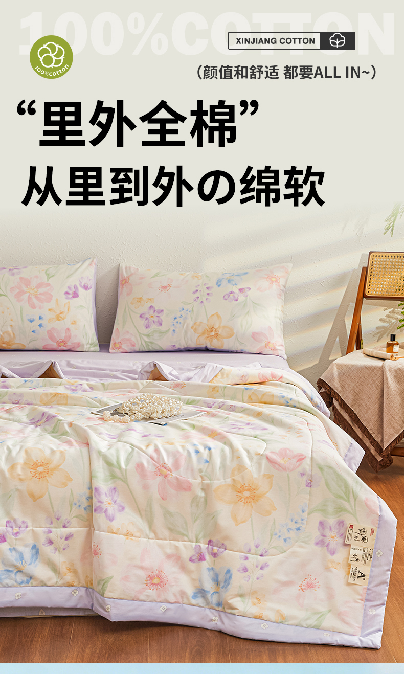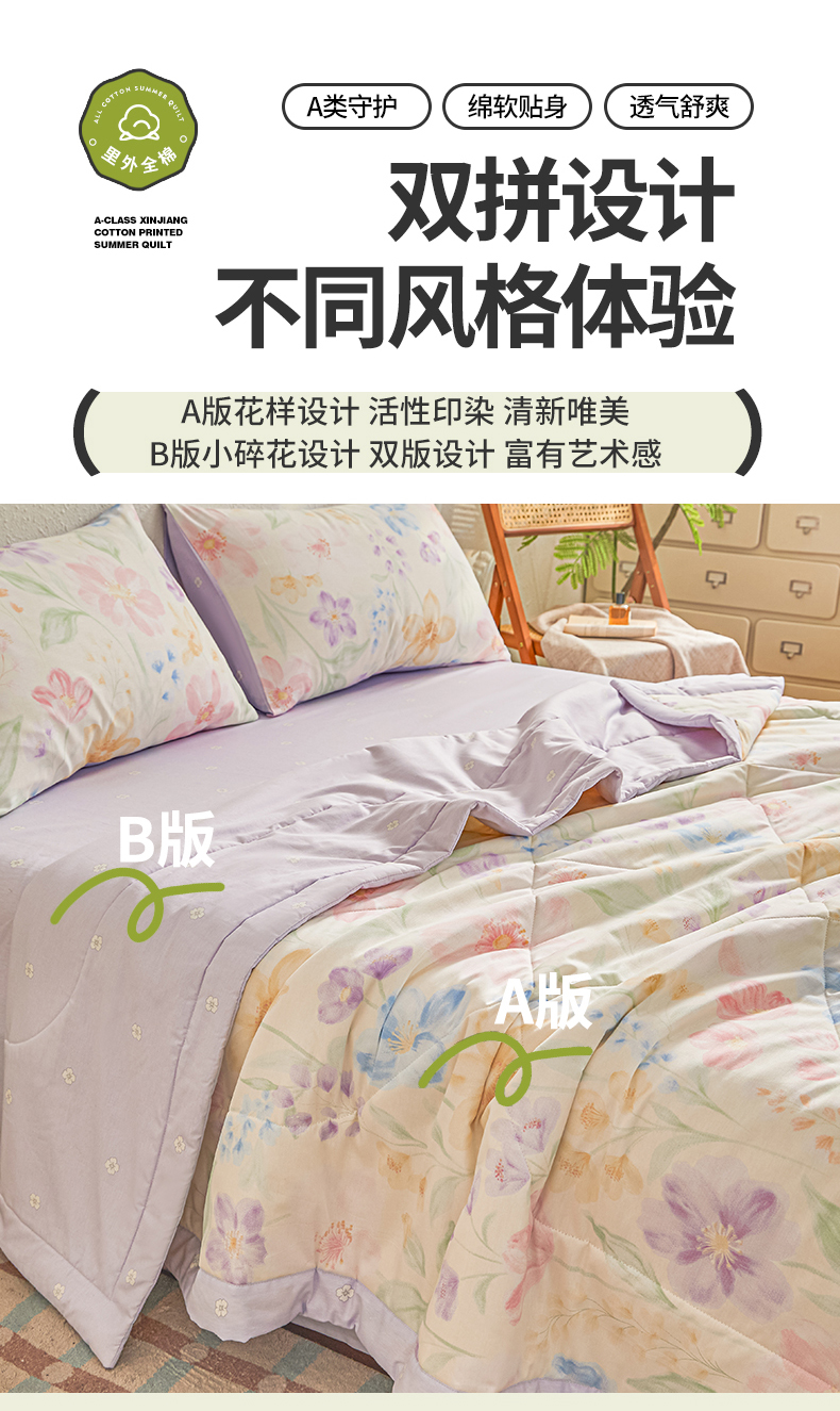 • 91家纺网 家纺一手货源 找家纺 小禹仔家纺 2026新款A类里外全棉印花棉花夏被 花信风来