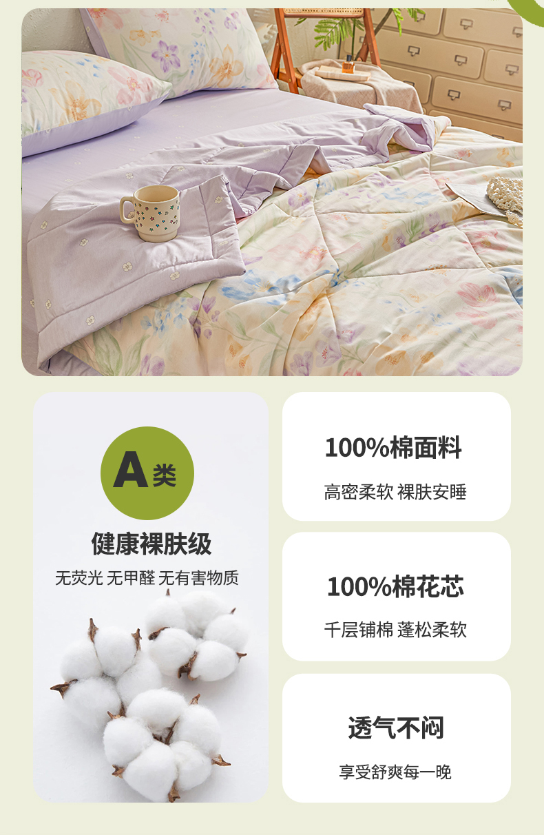 小禹仔家纺 2026新款A类里外全棉印花棉花夏被 花信风来