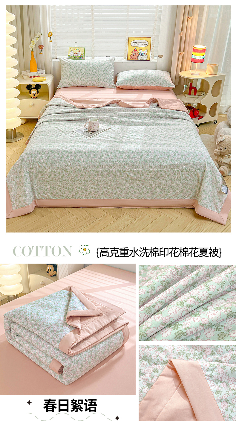 • 91家纺网 家纺一手货源 找家纺 犇牛仓储供应链 2026新款高克重水洗棉印花棉花夏被夏凉被空调被 朵拉花园