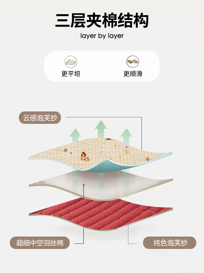 • 91家纺网 家纺一手货源 找家纺 梵朴 2026新款A类泡芙双层纱云感邹邹纱床盖三件套 木马小花