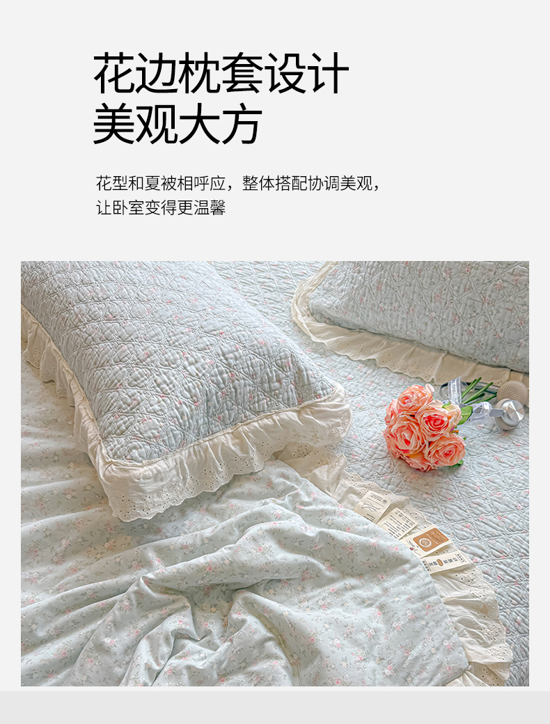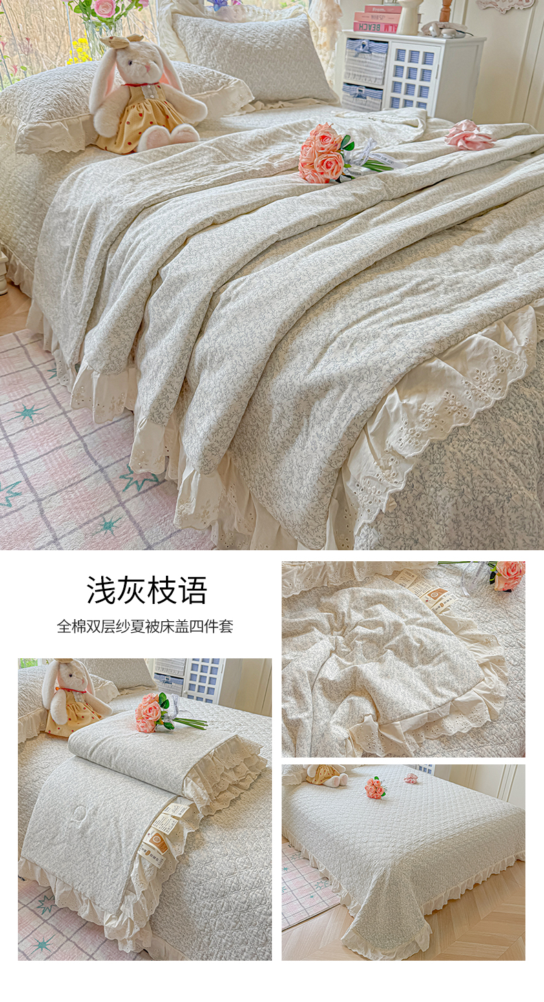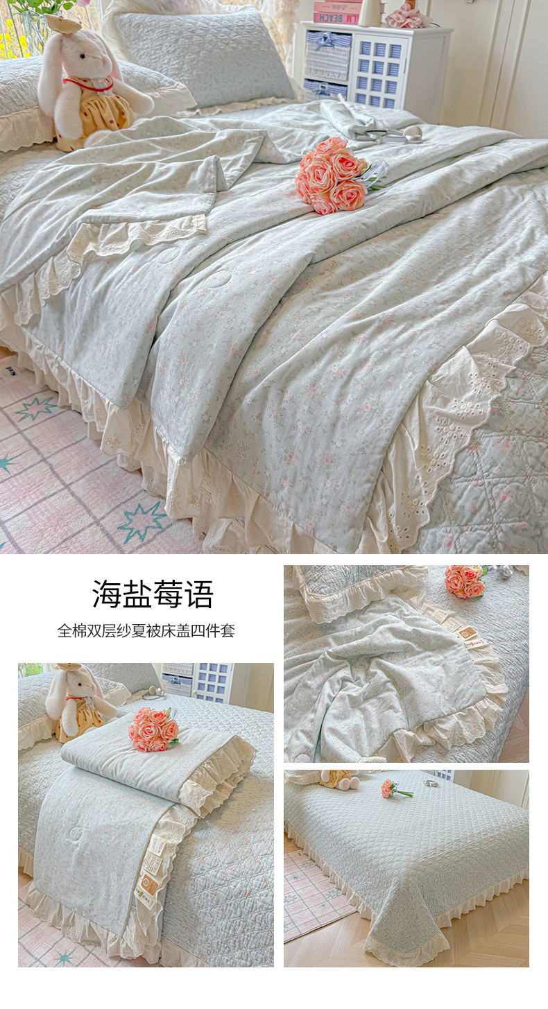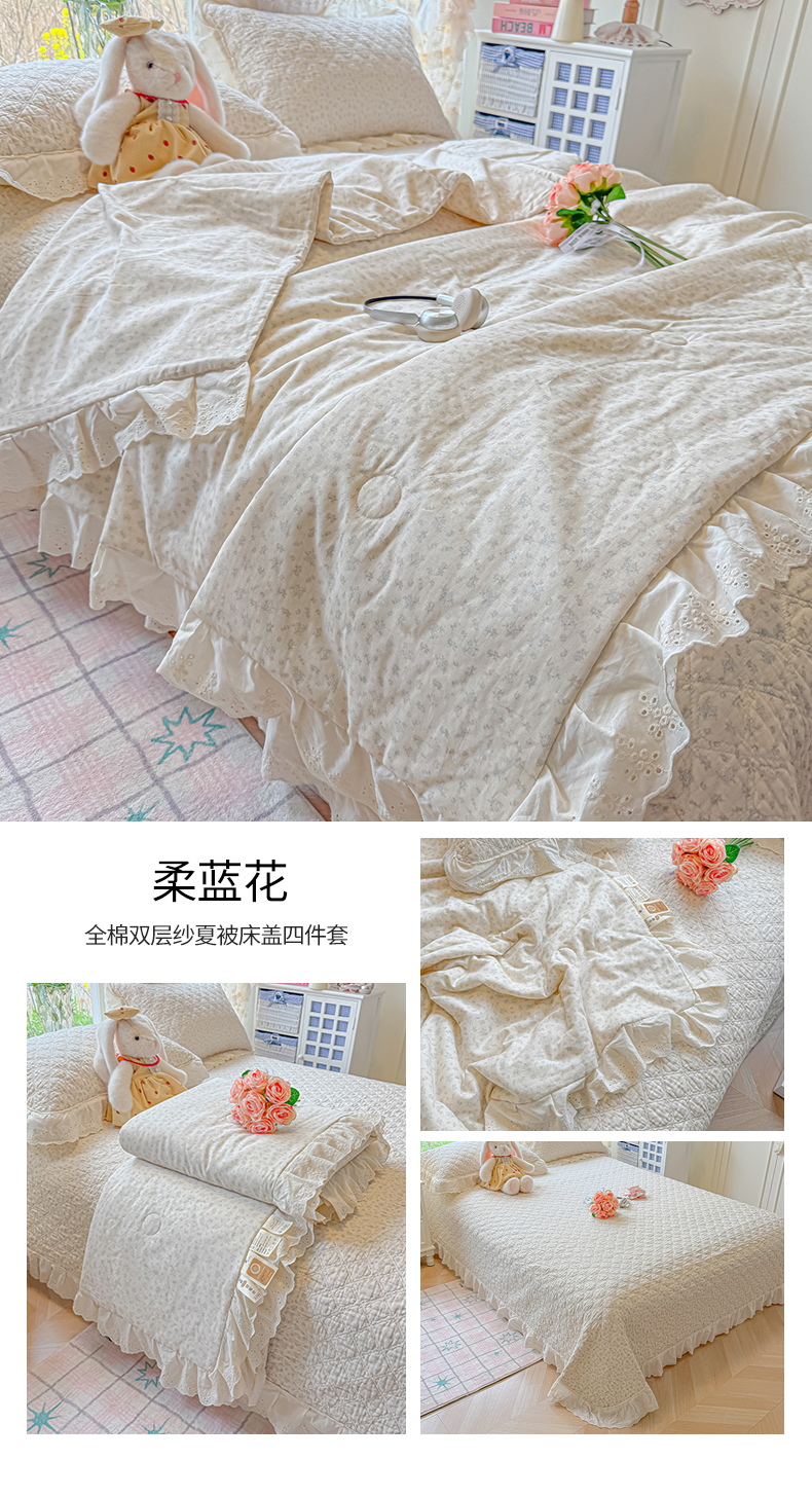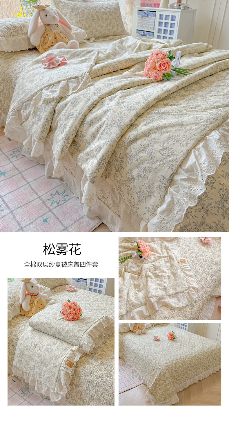 商品名称:(总)慕晨 2026新款大花边全棉双层纱多功能夏凉被床盖四件套高温水洗床盖夹棉三件套