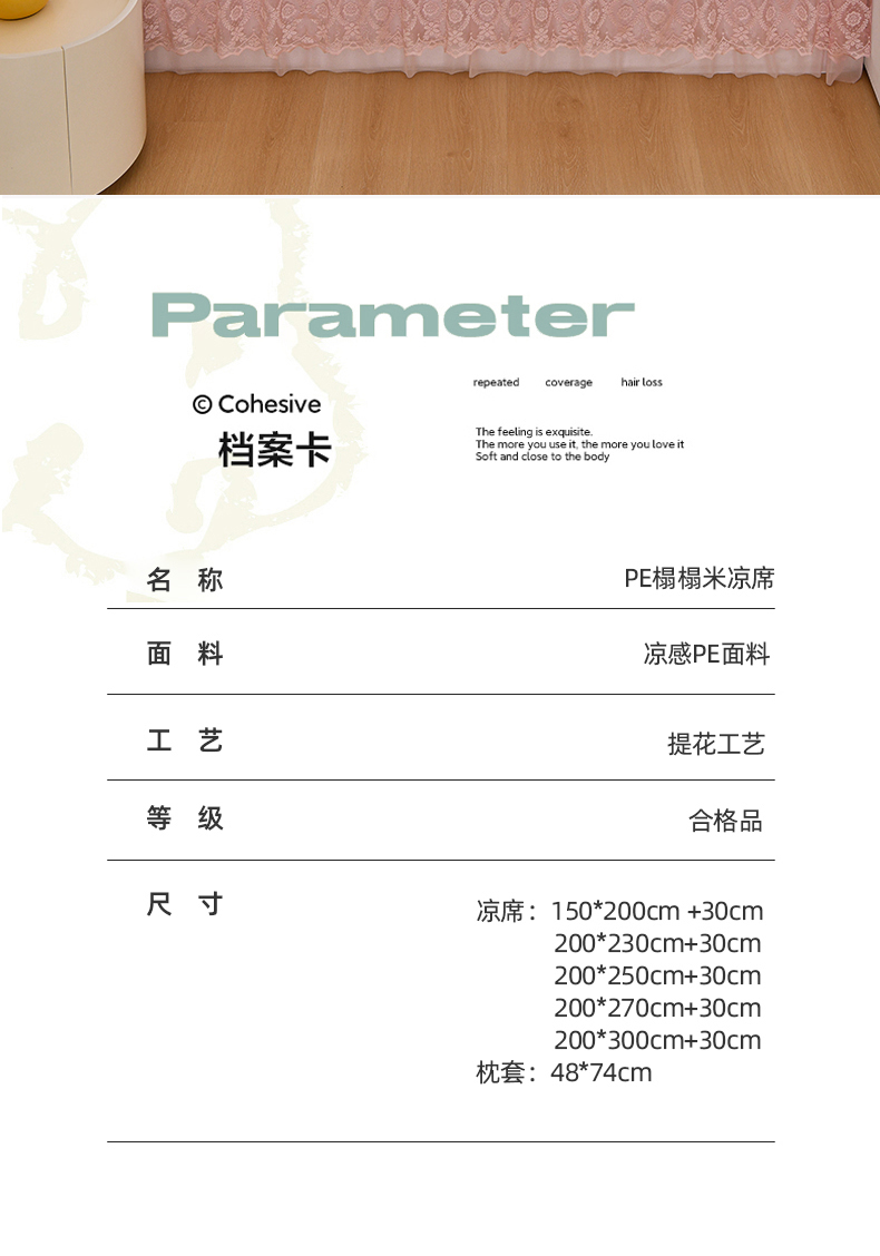 150x200cm+38cm单凉席+枕套一对 | ¥110.00 |